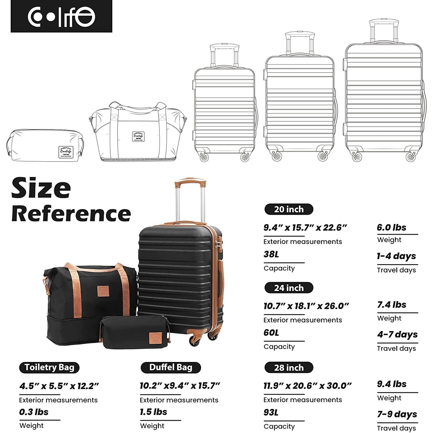 - The set offers a carry on luggage, a checked luggage, a large luggage, a weekender travel bag and a toiletry bag. Stylishly designed to make travel effortless.