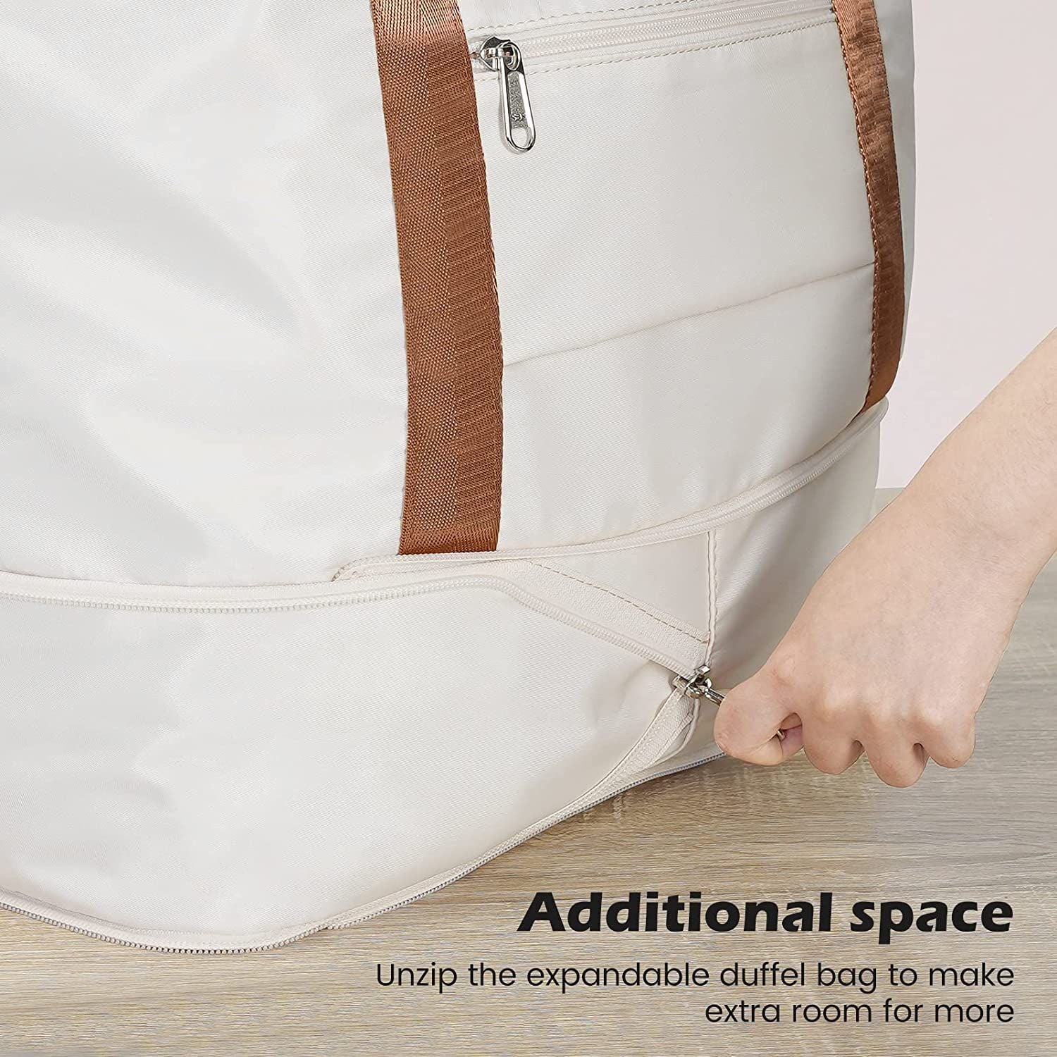 - Going on an excursion? Grab our expandable weekender travel bag and toiletry bag with you. Made of polyester fabric, the bags are mild water-repellent with multiple pockets for organization. The weekender bag is designed with the pocket sleeve for quick access of personal items and attachment of luggage handle.