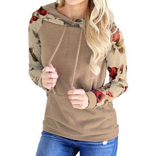 Autumn Long Sleeve Round Collar Floral Print Splice Tops
