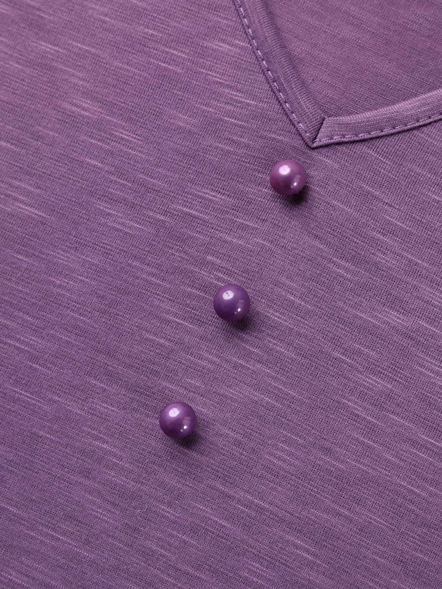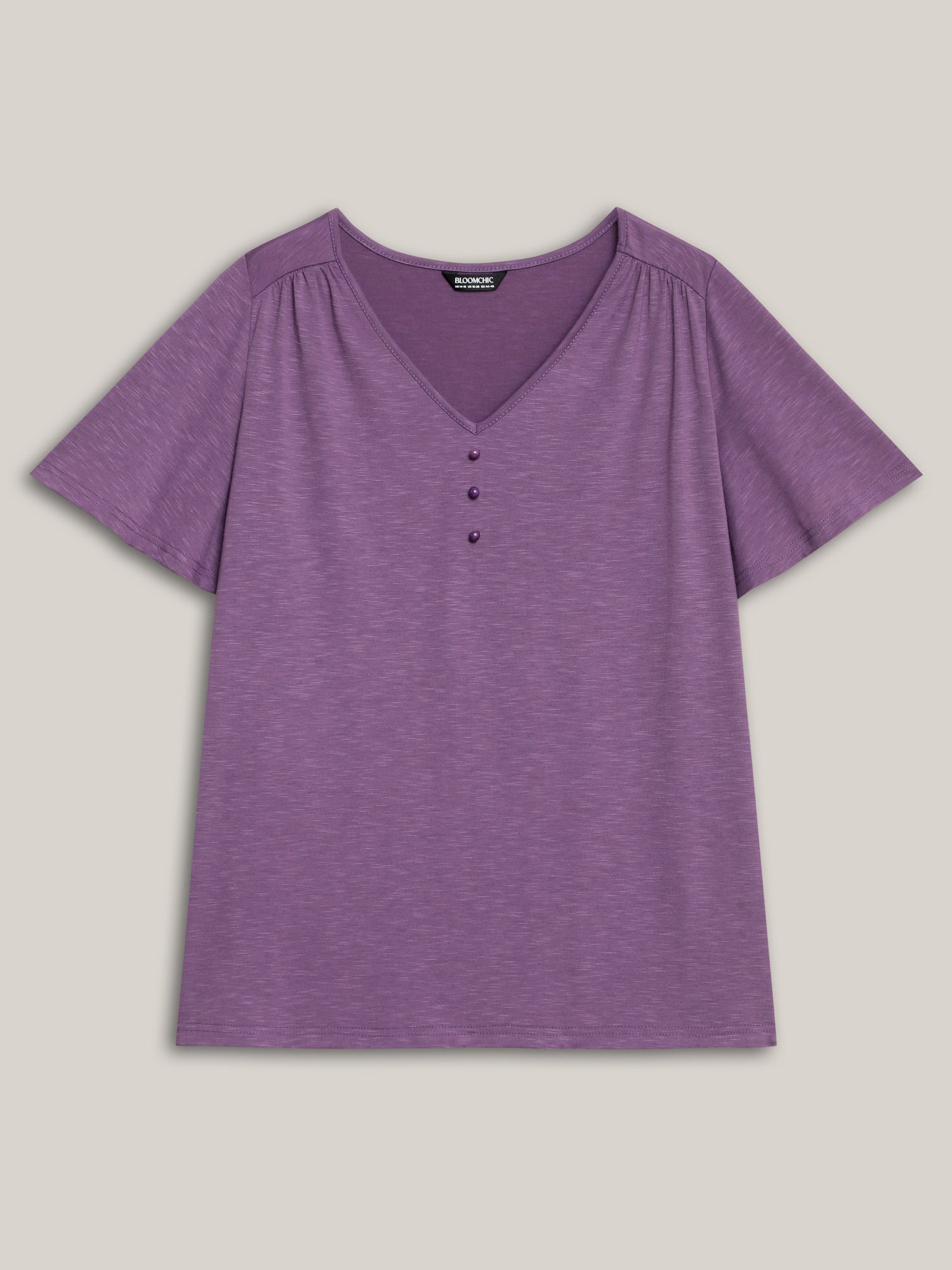 Bamboo Textured Pleated Shoulder Button T-Shirt
