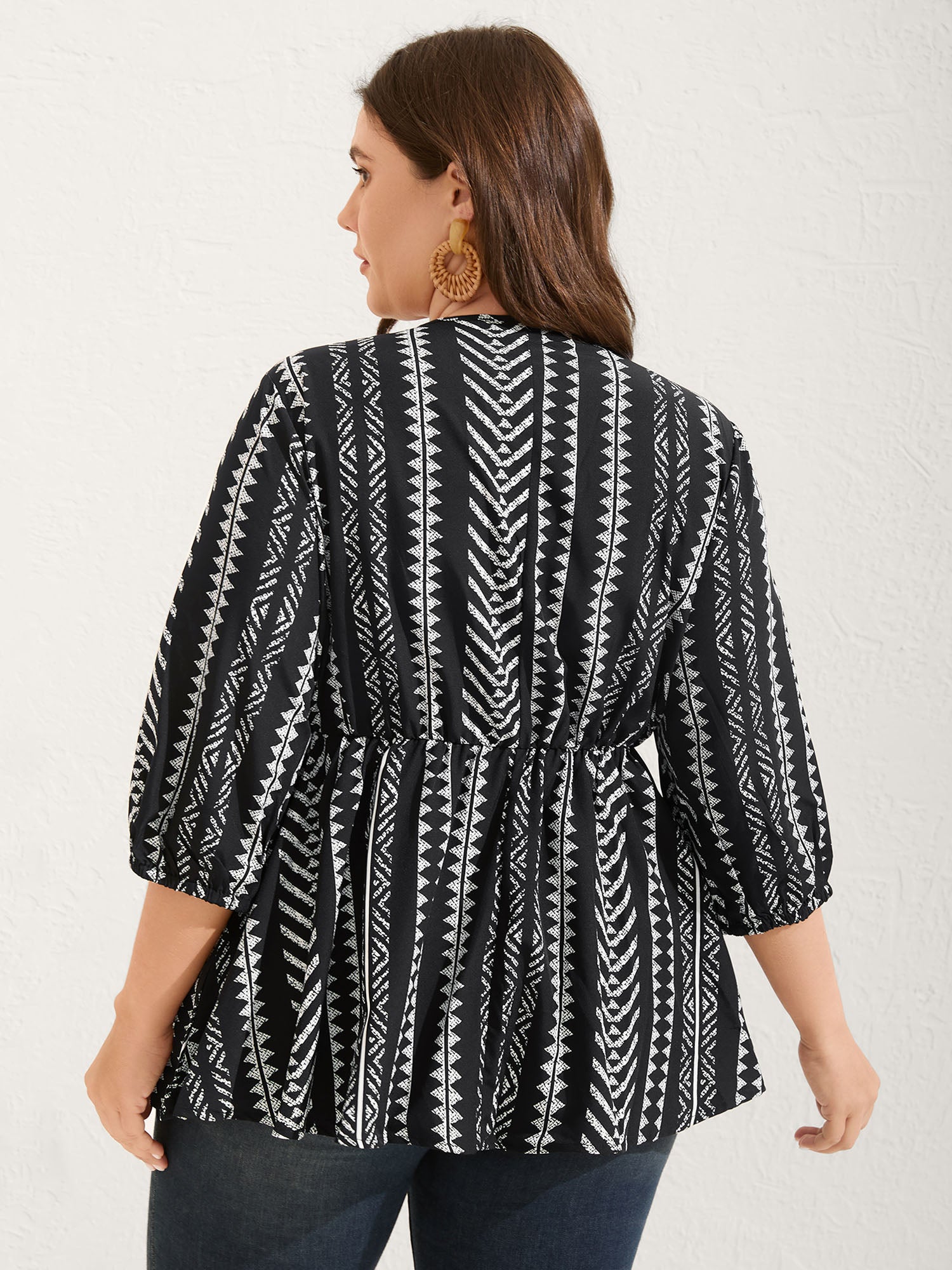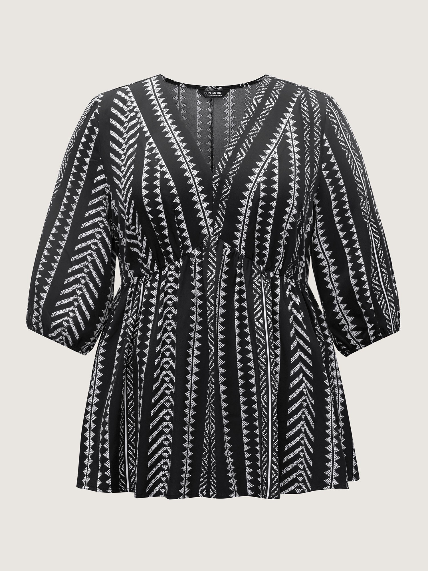 Bandana Geometric Lantern Sleeve Gathered Blouse