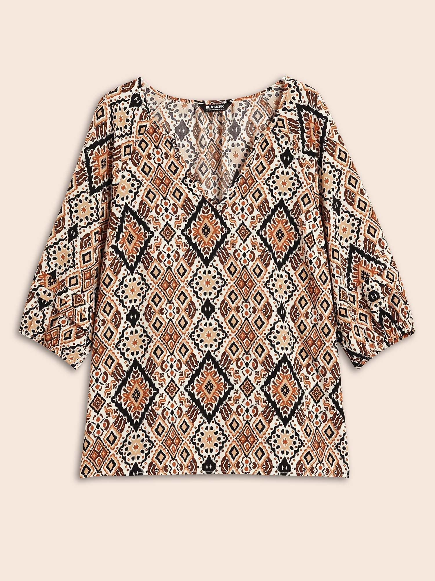 Bandana Geometric Pleated Lantern Sleeve Blouse