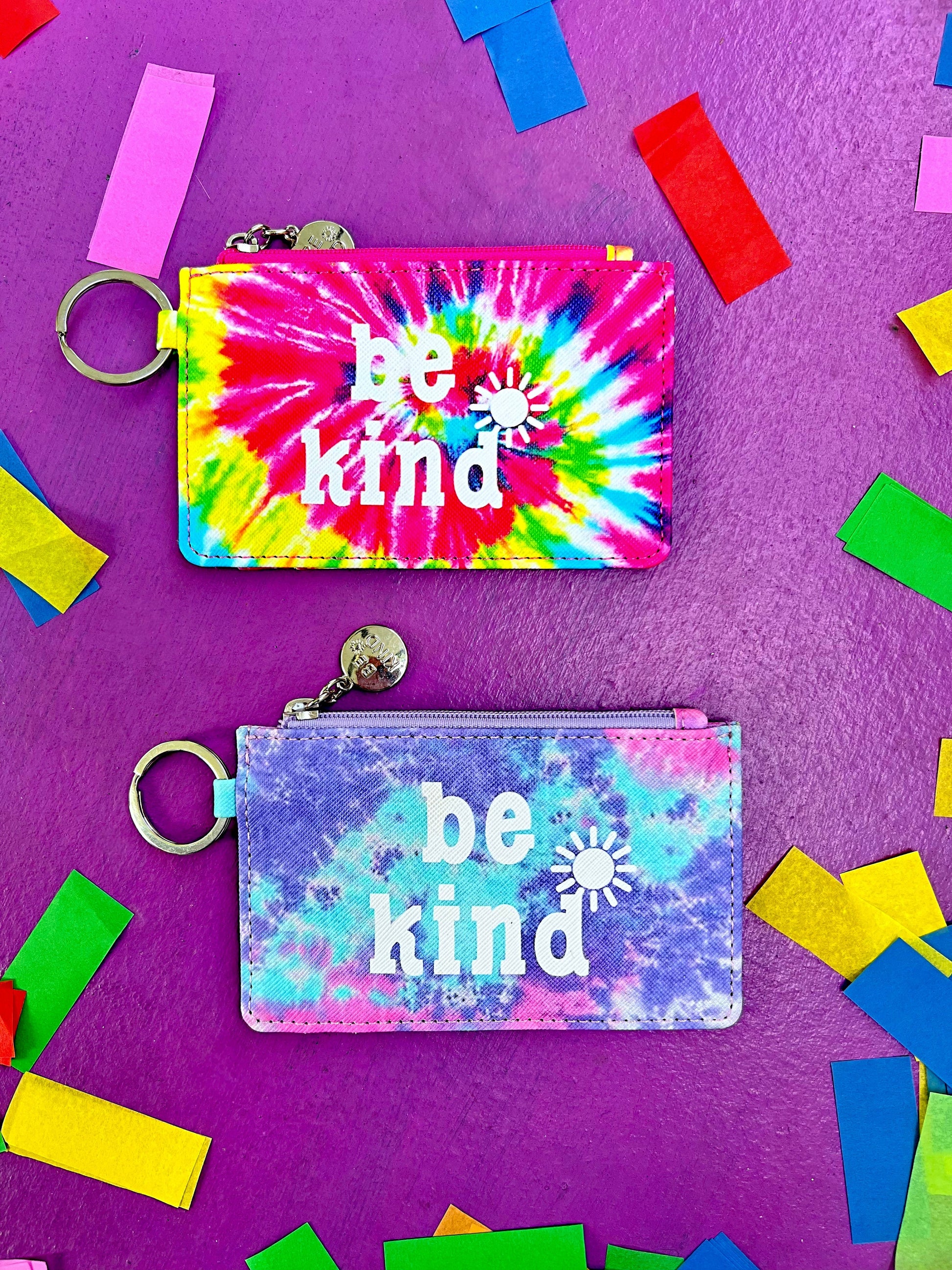 The Be Kind Card Case Keychain is the perfect blend of style and functionality. Available in two fun tie-dye options¡ªRainbow or Cotton Candy¡ªthis card case features a zipper closure and a window for your ID, making it super easy to carry your essentials (like your driver¡¯s license, credit card, and loose change) while spreading that all-important message of kindness.