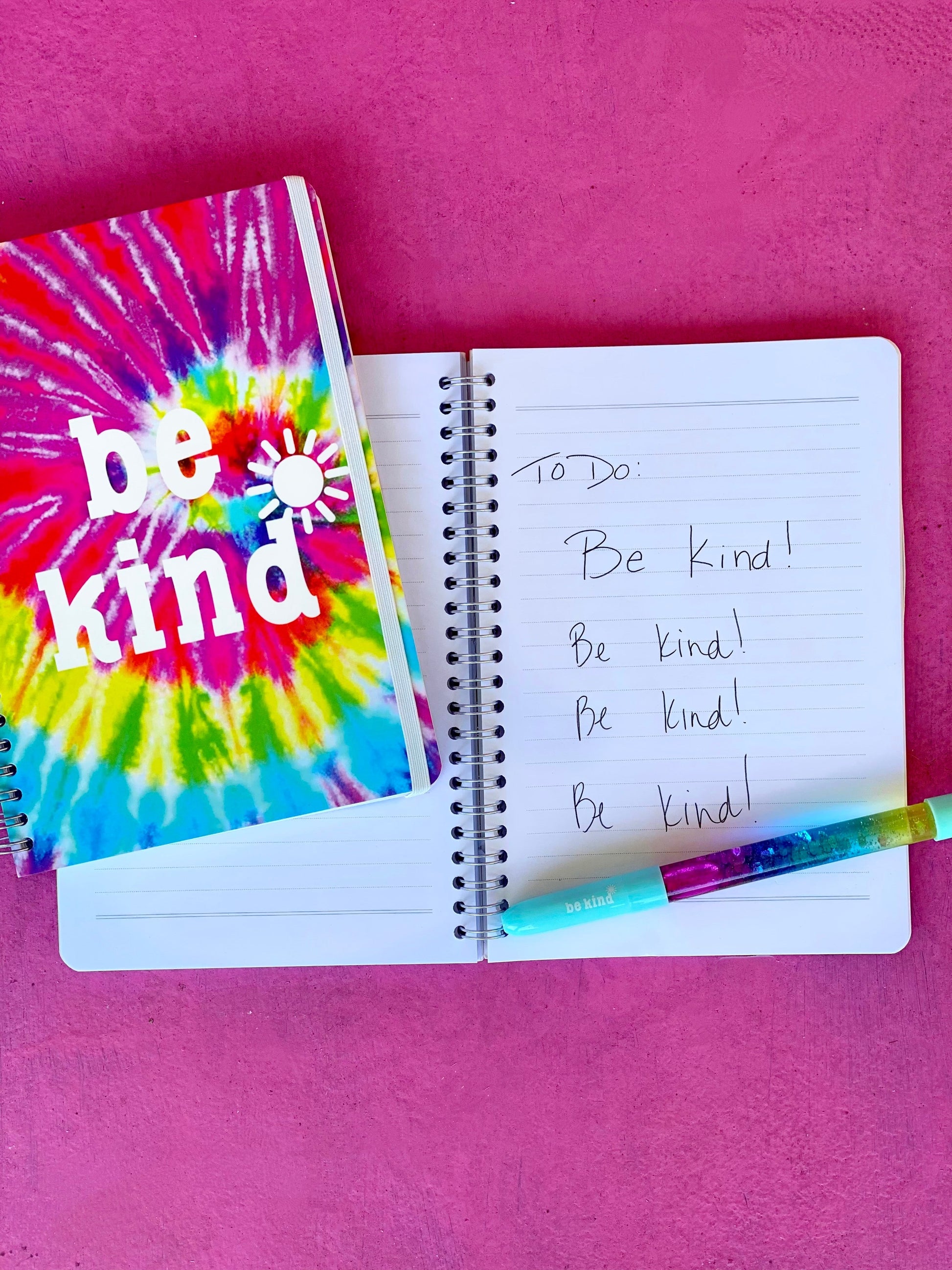 Bright, bold and full of kind ideas! Our new, tie-dye Be Kind notebook is the perfect accessory to carry everyday! Fill the pages with ideas, lists, notes and thoughts!?