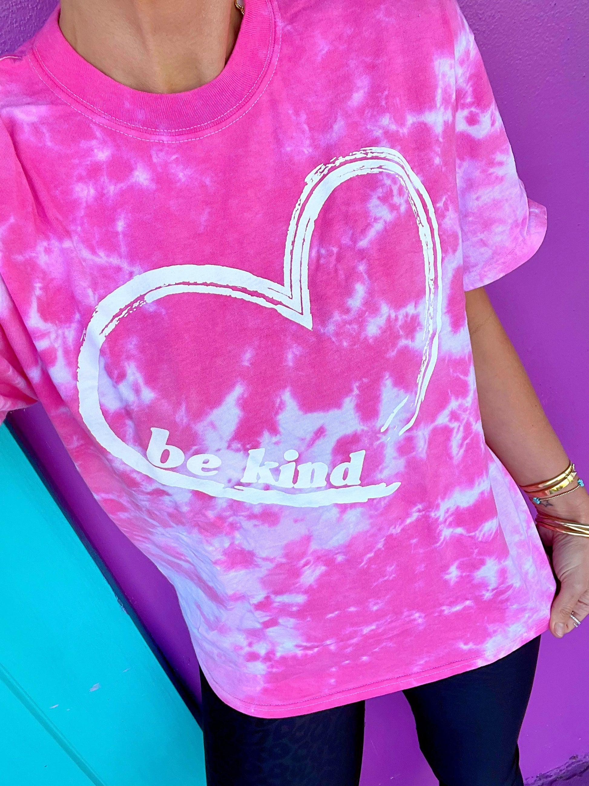 Be the walking reminder the world needs—grab the Be Kind Pink Splash Heart Tie-Dye Tee before it sells out again!