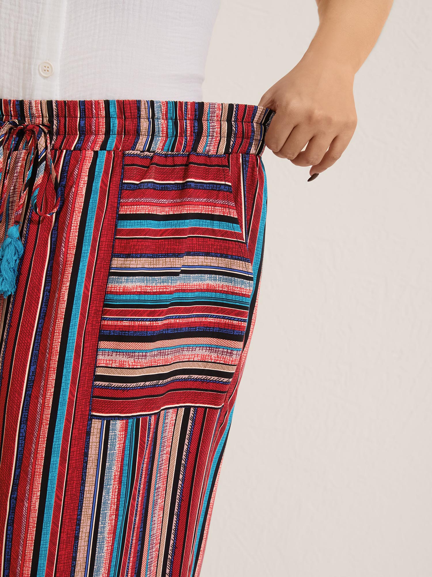 Boho Stripes Drawstring Wide-Leg Pants