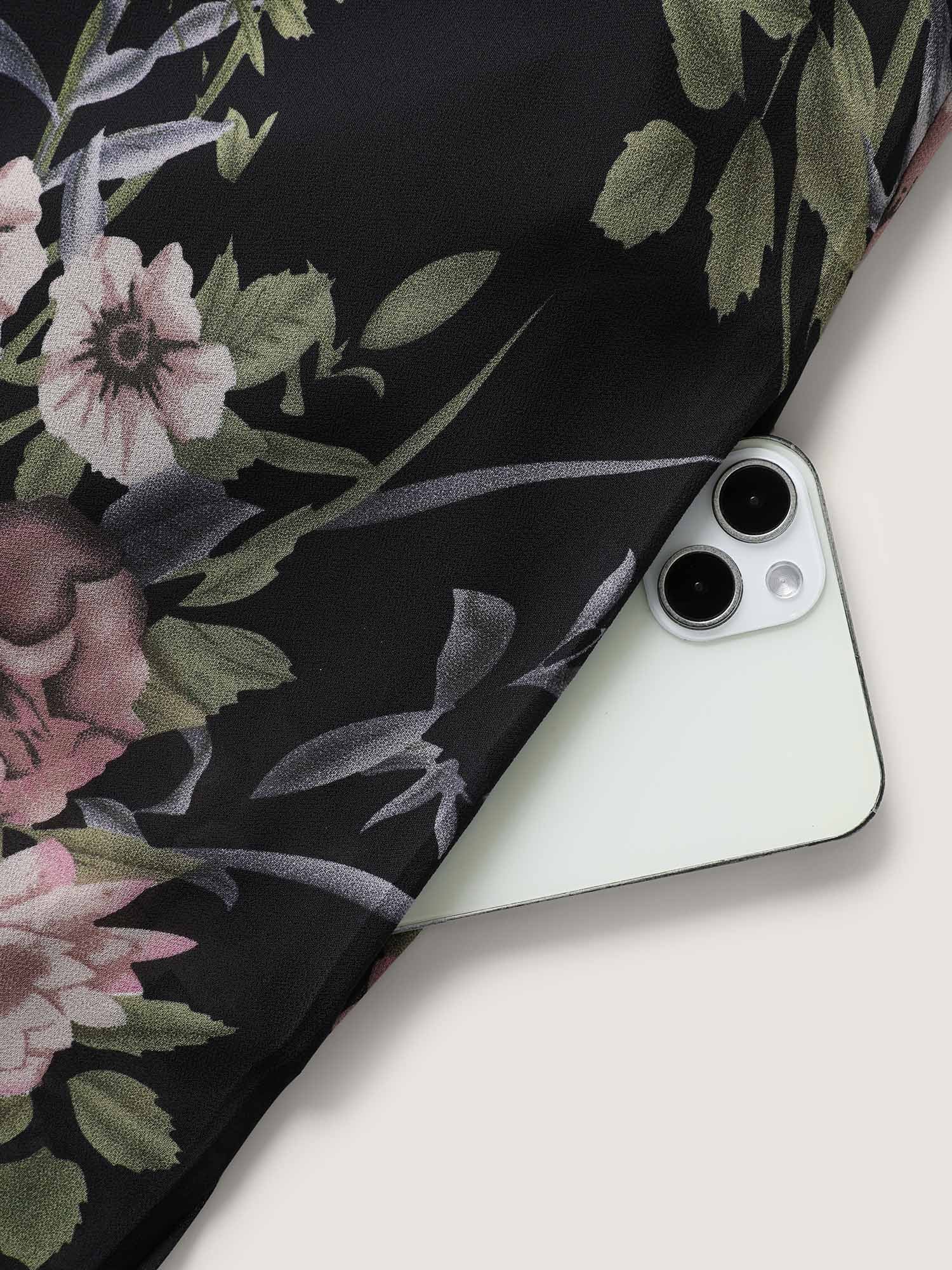 Chiffon Floral Crisscross Hanky Hem Blouse