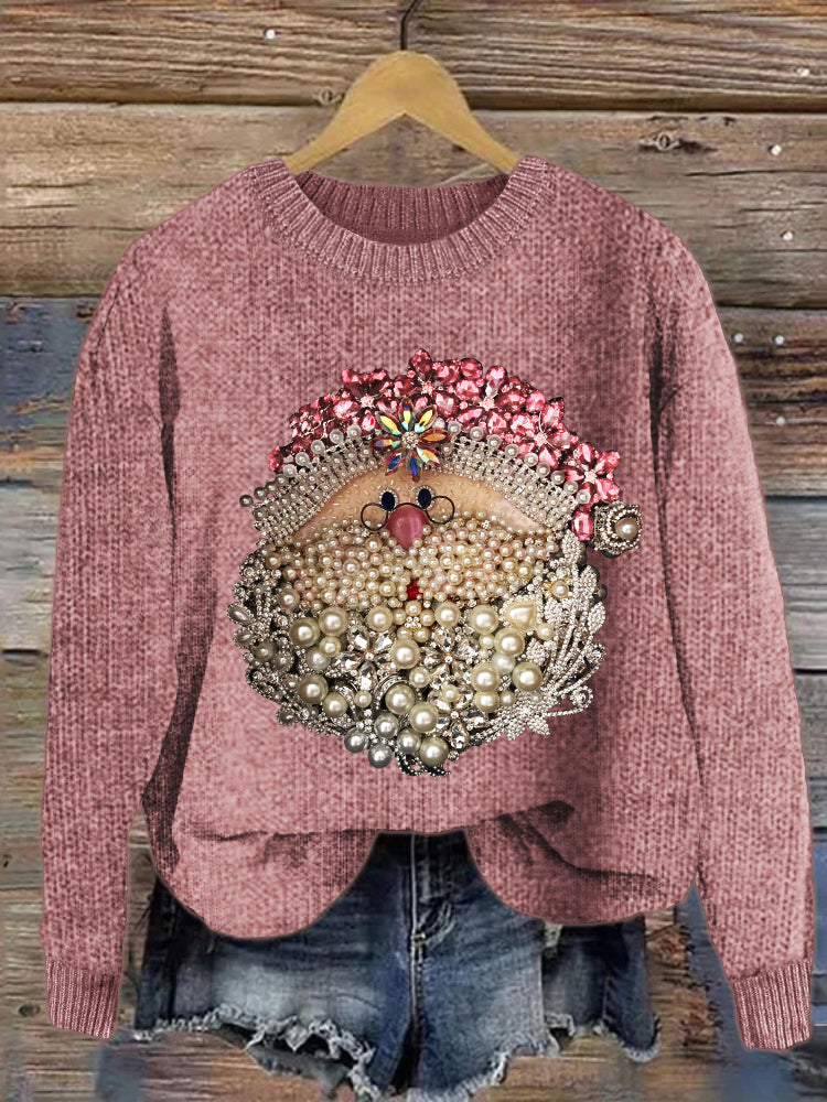 Christmas Pink Santa Claus Jewel Art Cozy Knit Sweater