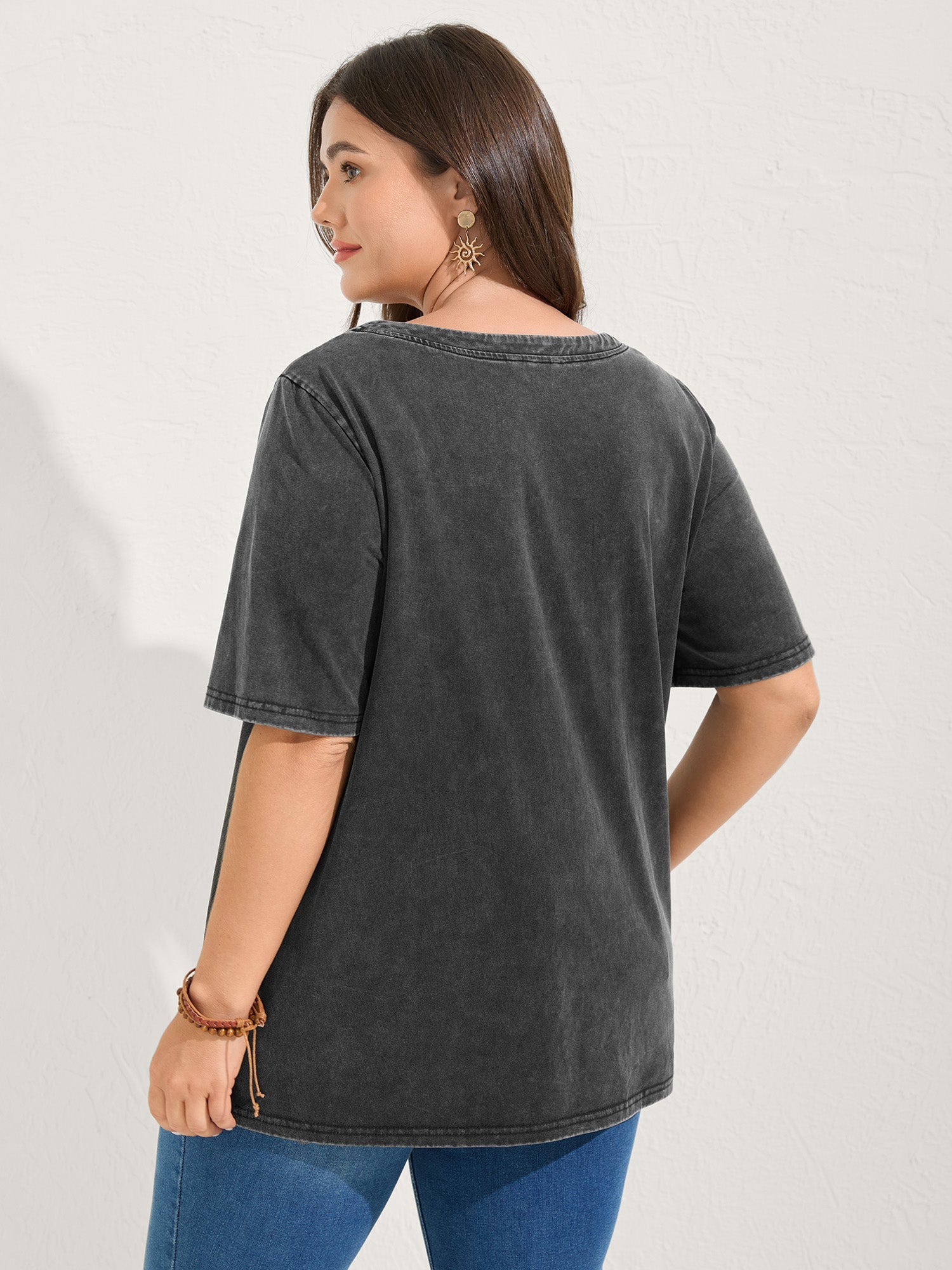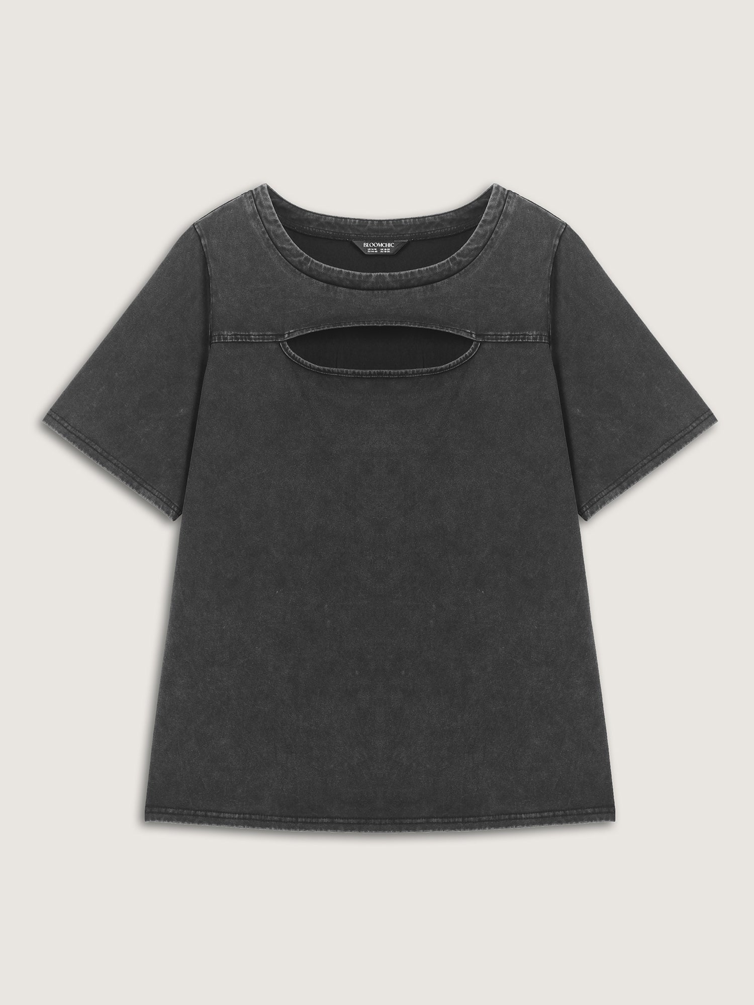 Cotton Vintage Wash Neck Cut-Out T-Shirt