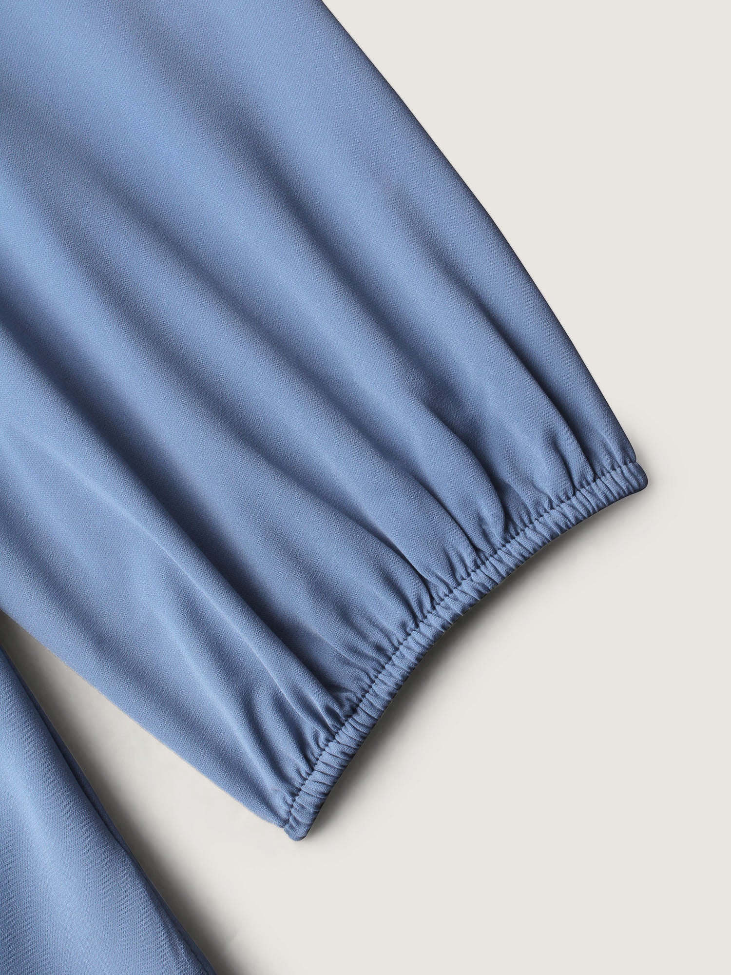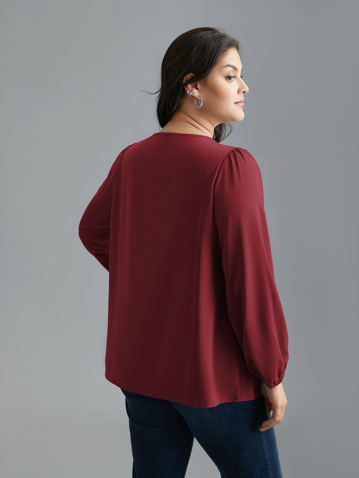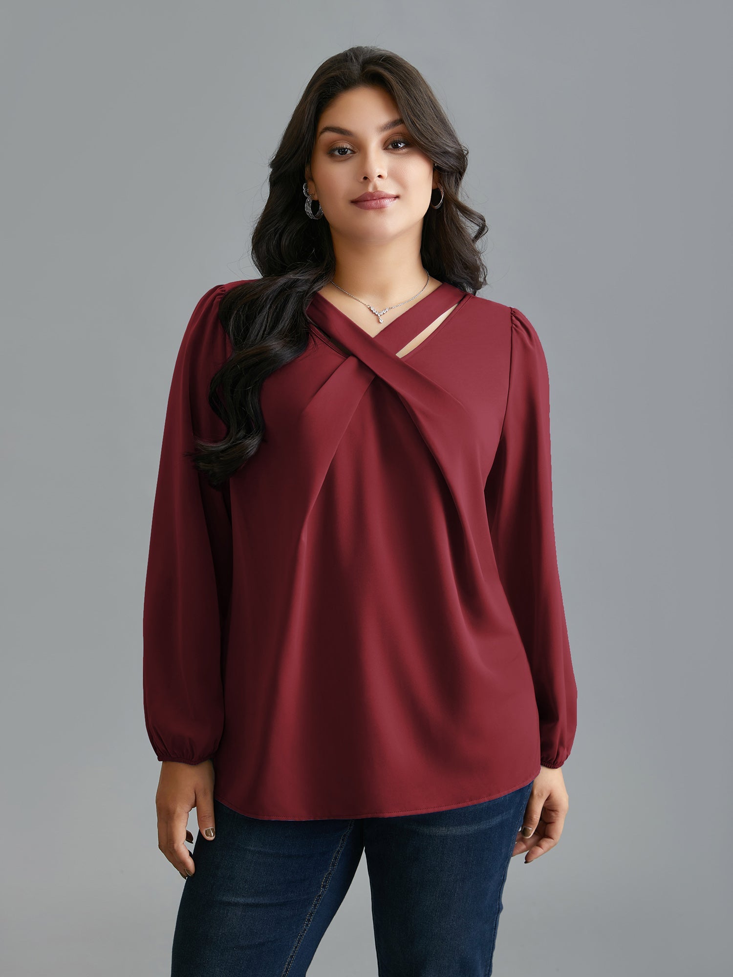 Criss Cross Neckline Puff Sleeve Gathered Blouse