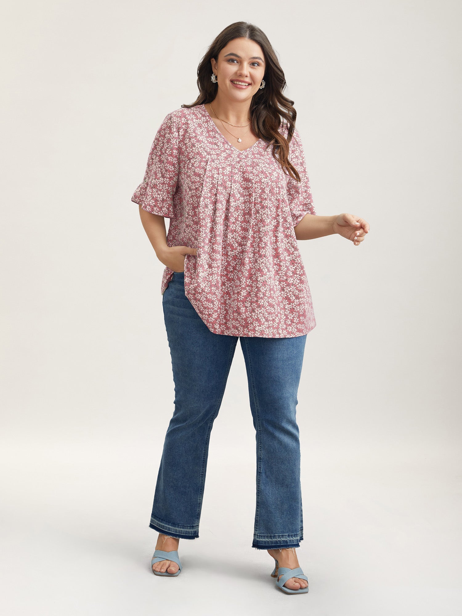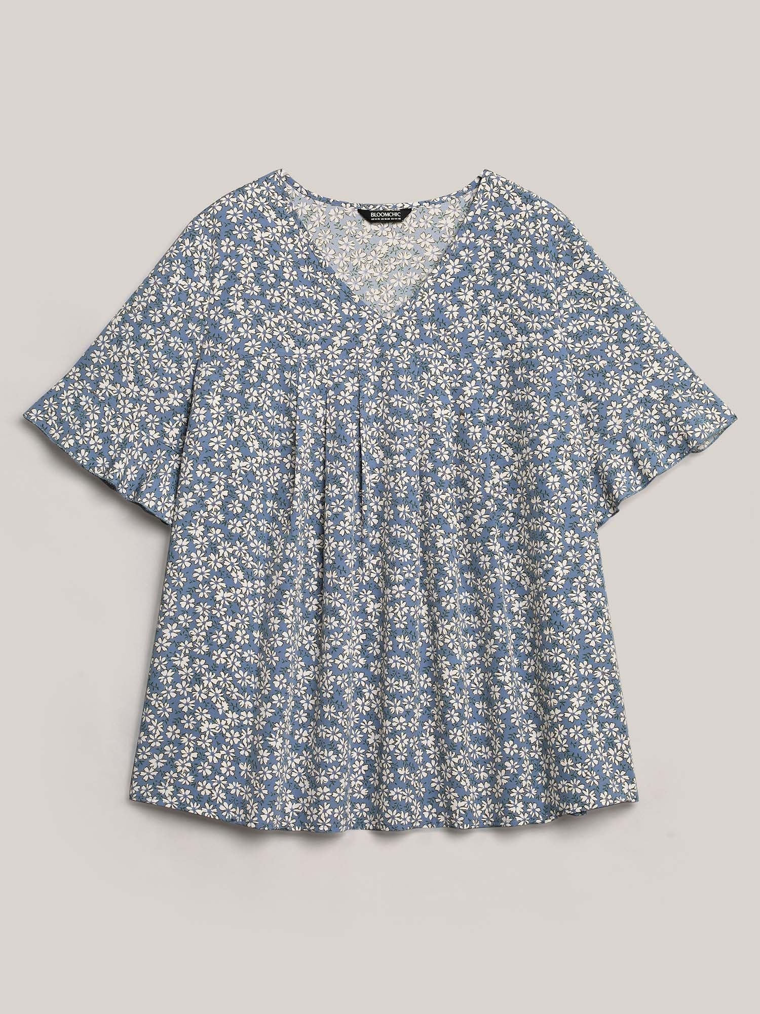 Ditsy Floral Pleated Flared Sleeve Shirt