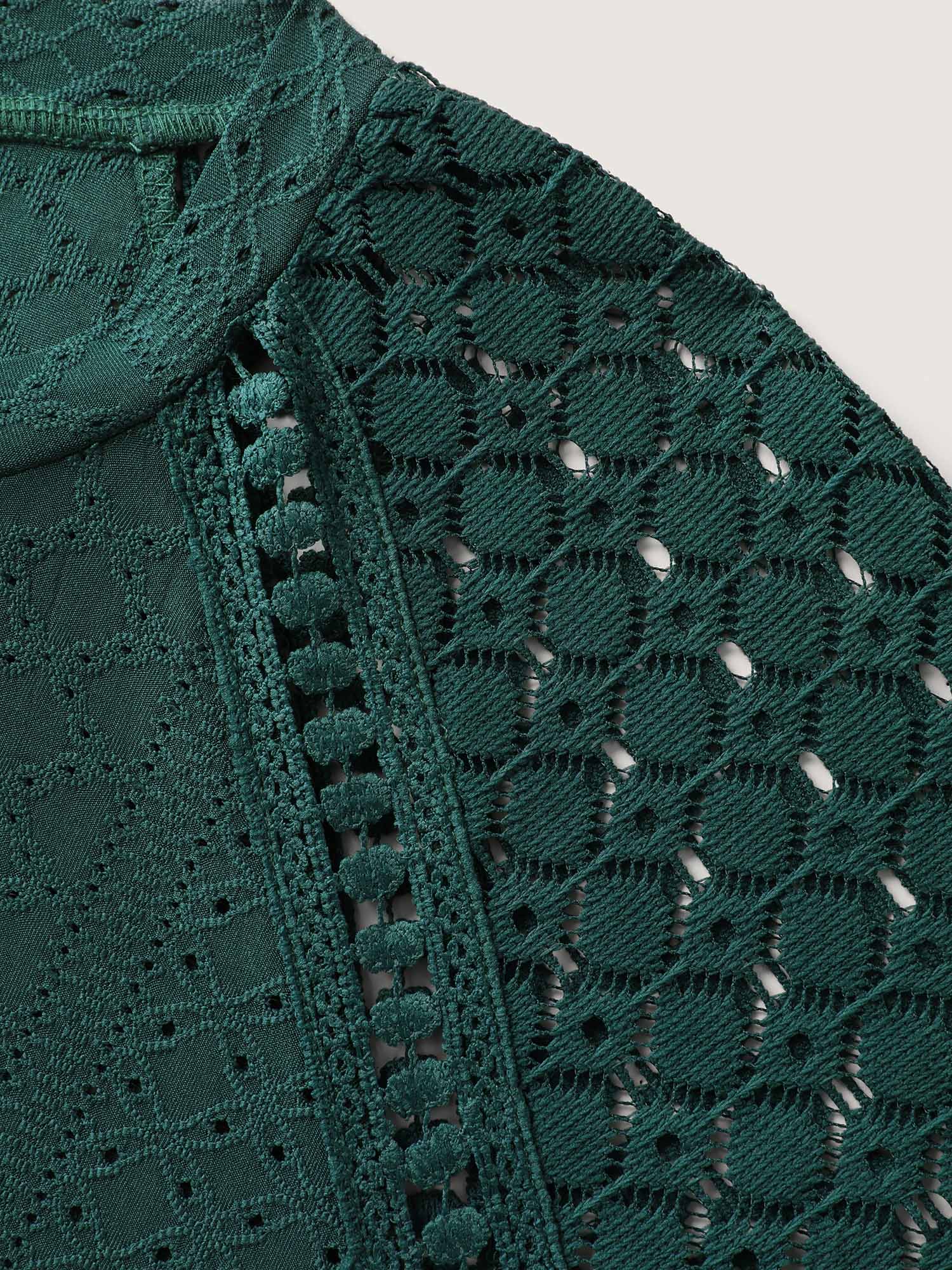 Eyelet Trim Lace Cut-Out Solid T-Shirt