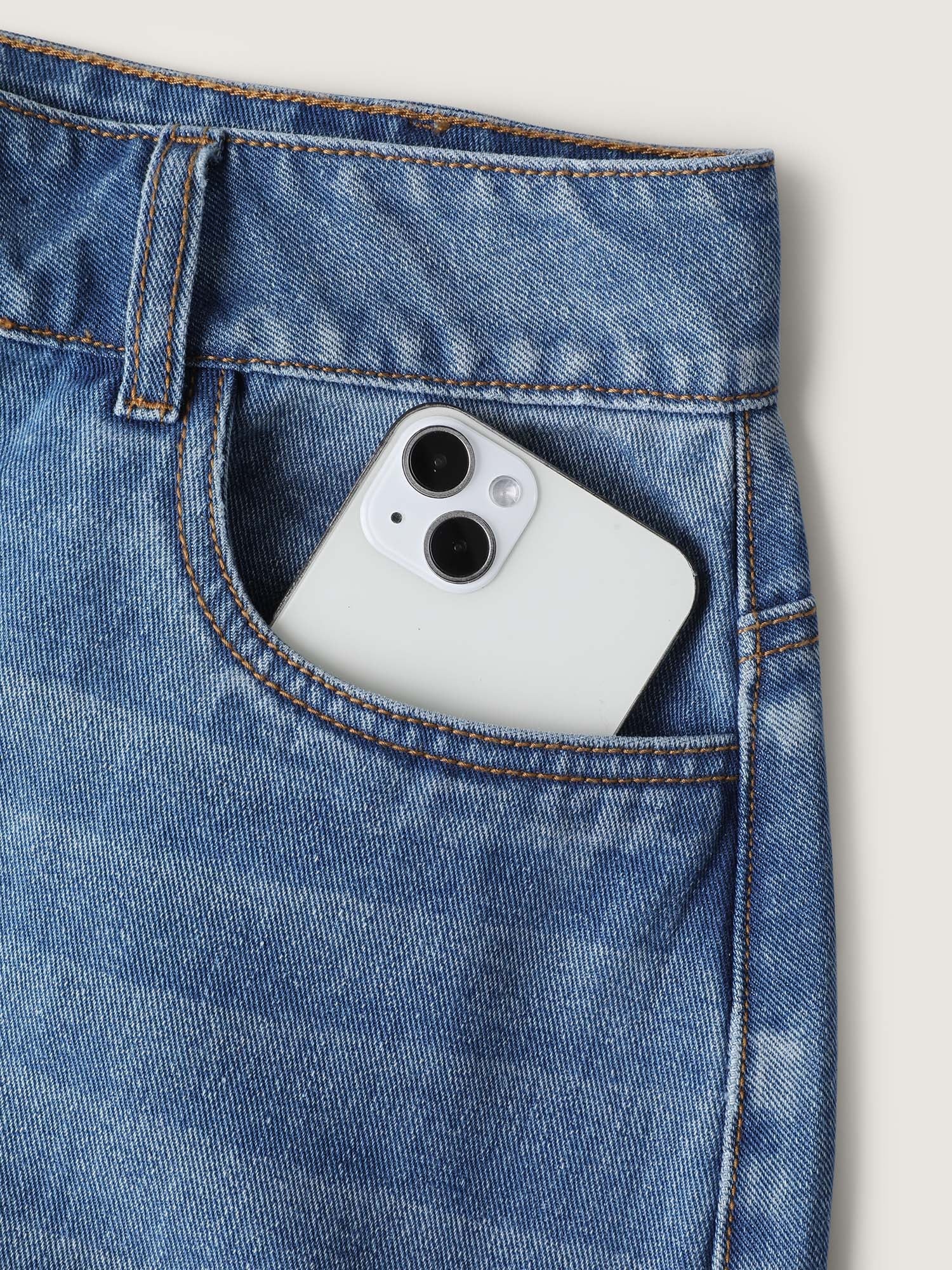 Faded Wash Slit Hem Denim Skirt