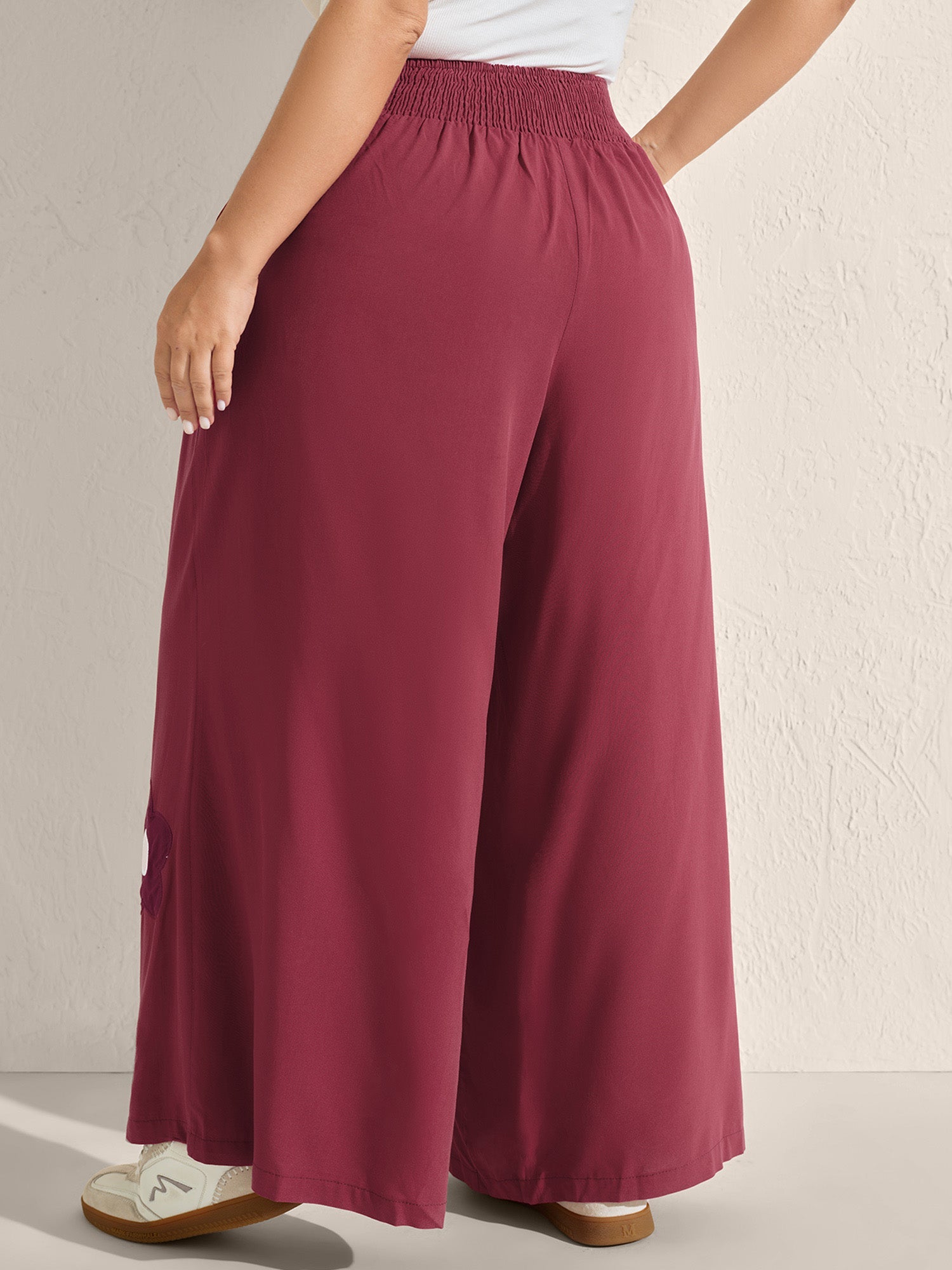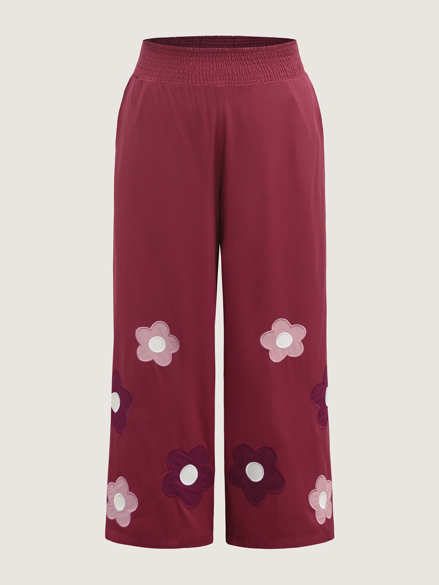 Floral Applique Embroidery Wide-Leg Pants