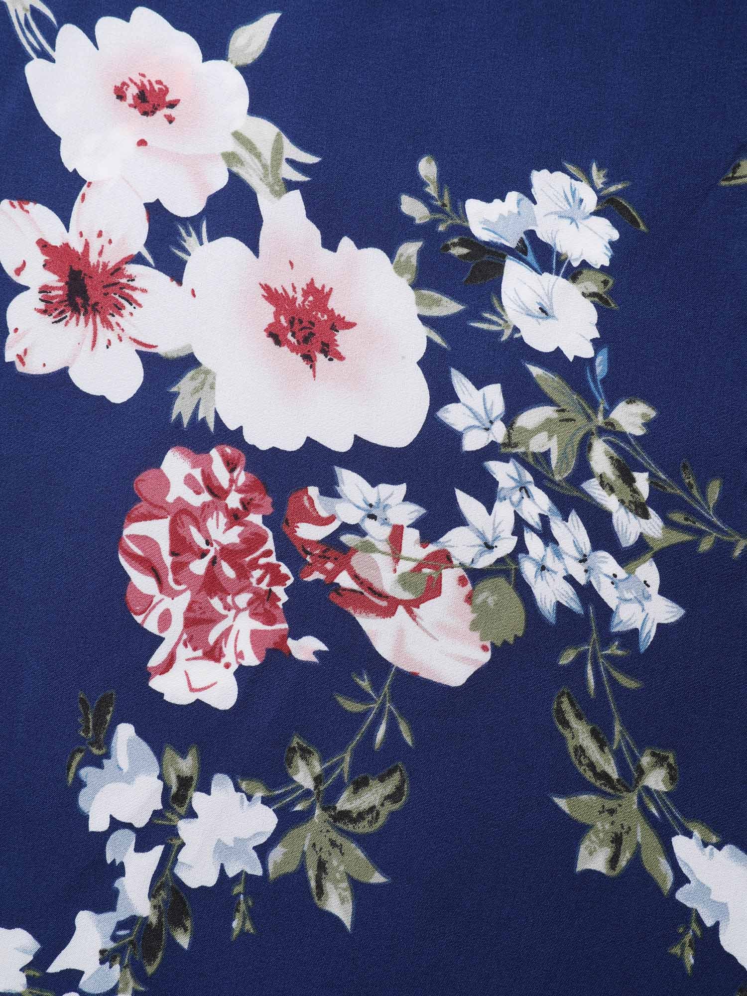 Floral Belted Waist Ruffled Pockets Midi Dress