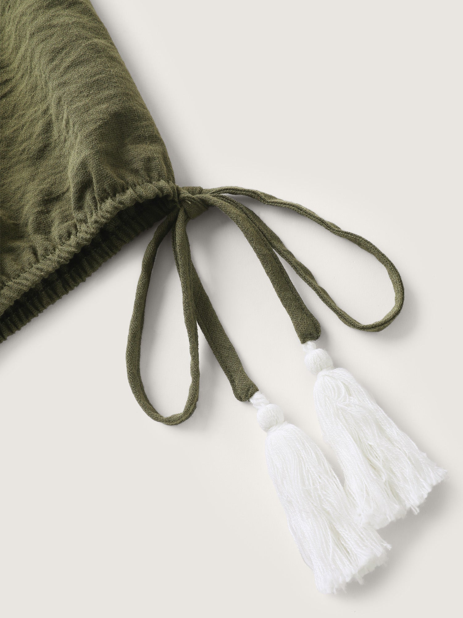 Floral Embroidery Puffy Sleeve-Tie Blouse