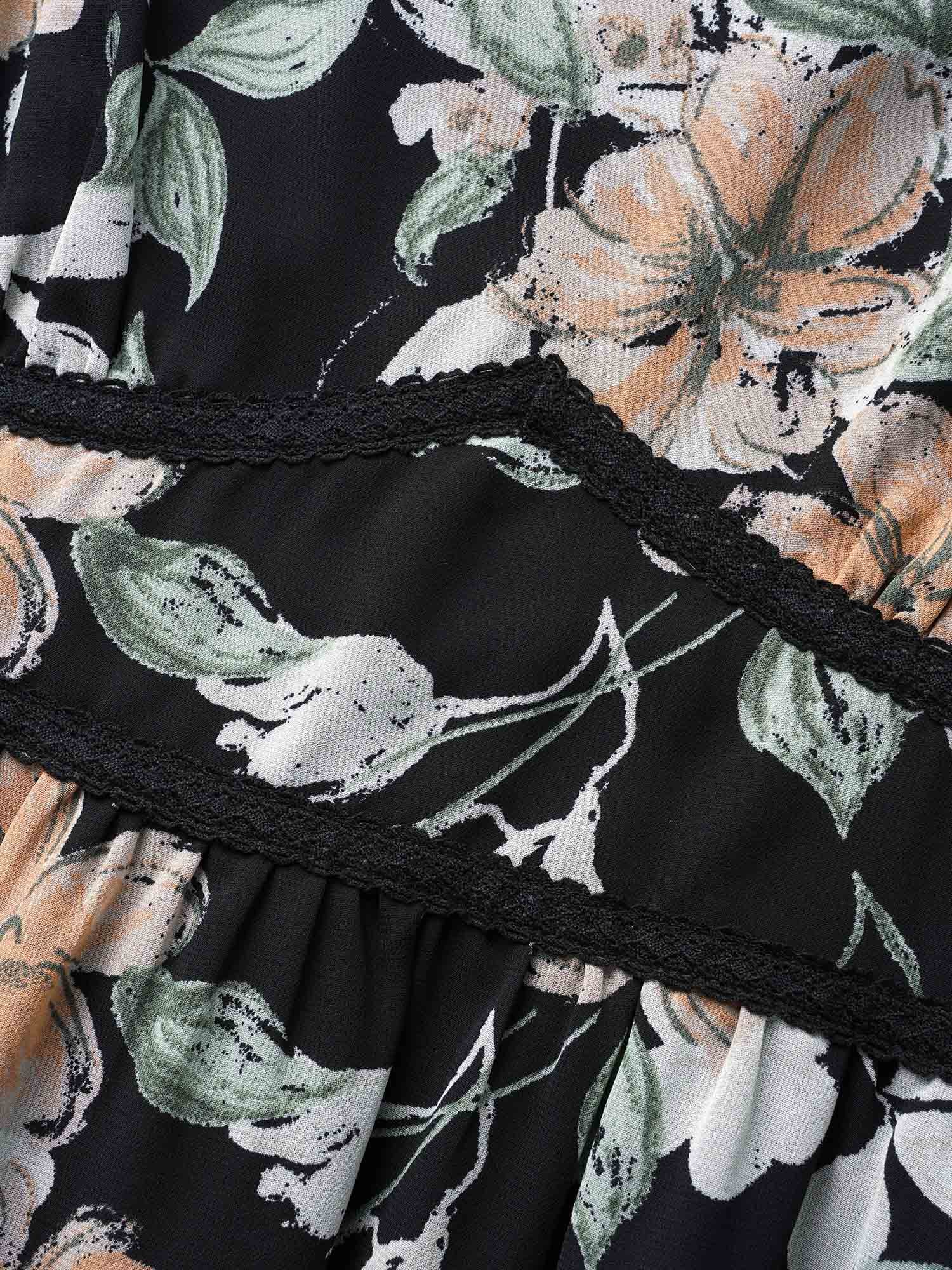 Floral Heart Neckline Woven Ribbon Gathered Dress