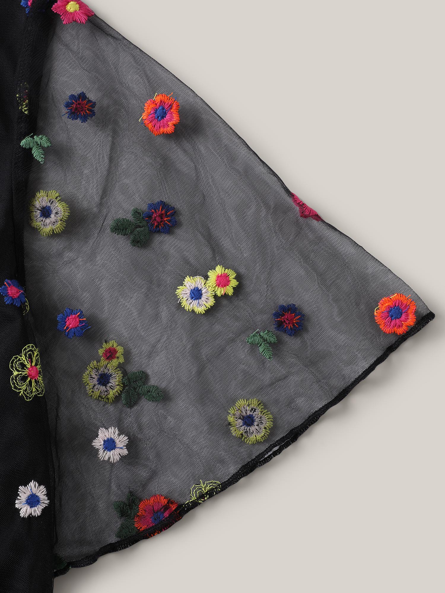 Floral Mesh Embroidery Babydoll Blouse