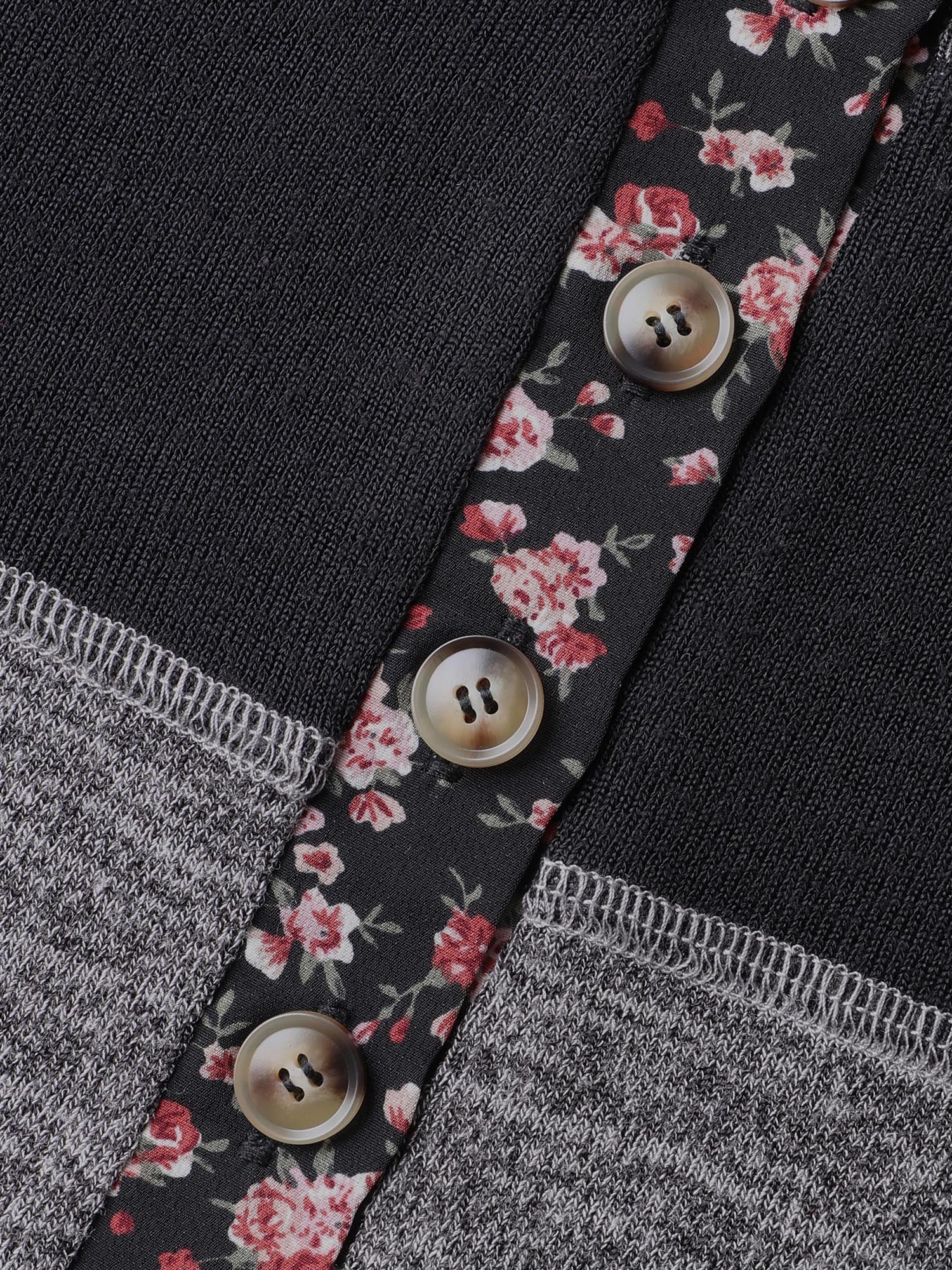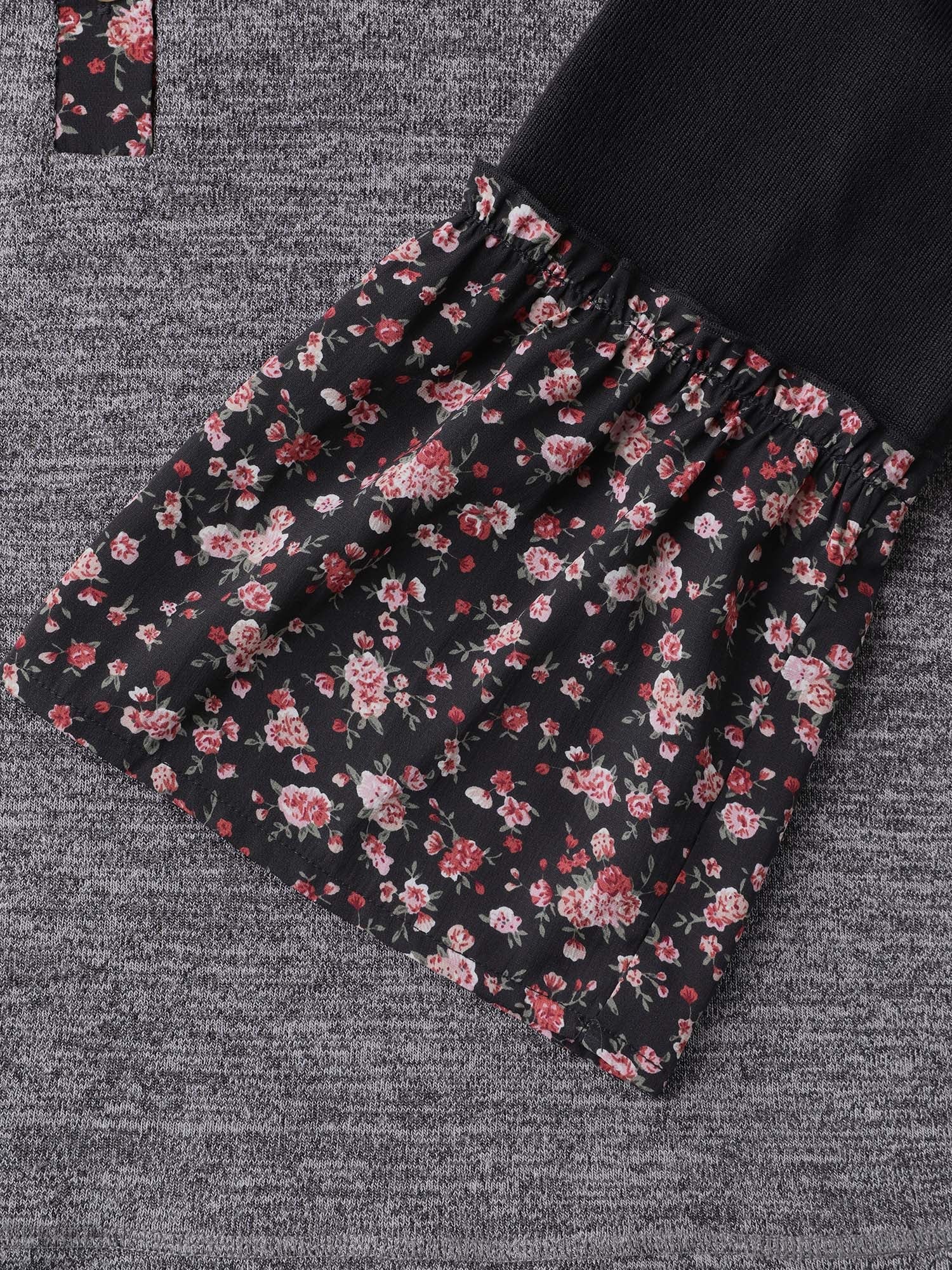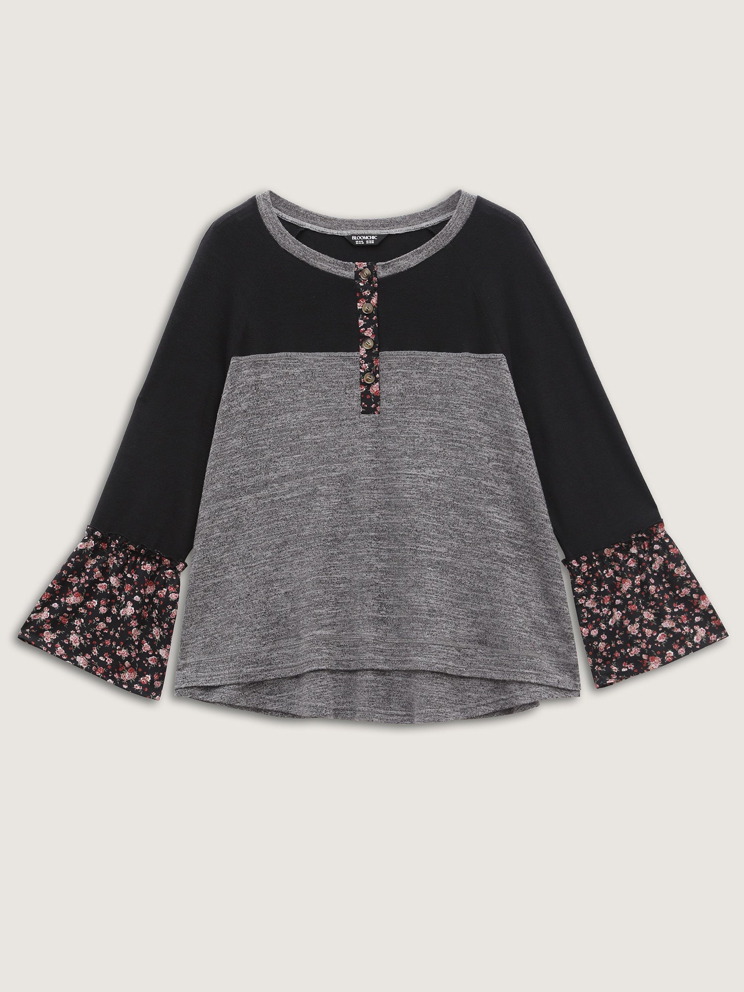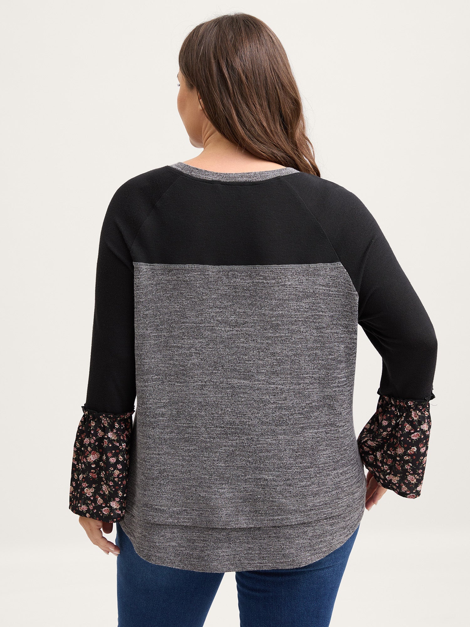 Floral Print Flared Sleeve Contrast Sweatshirt