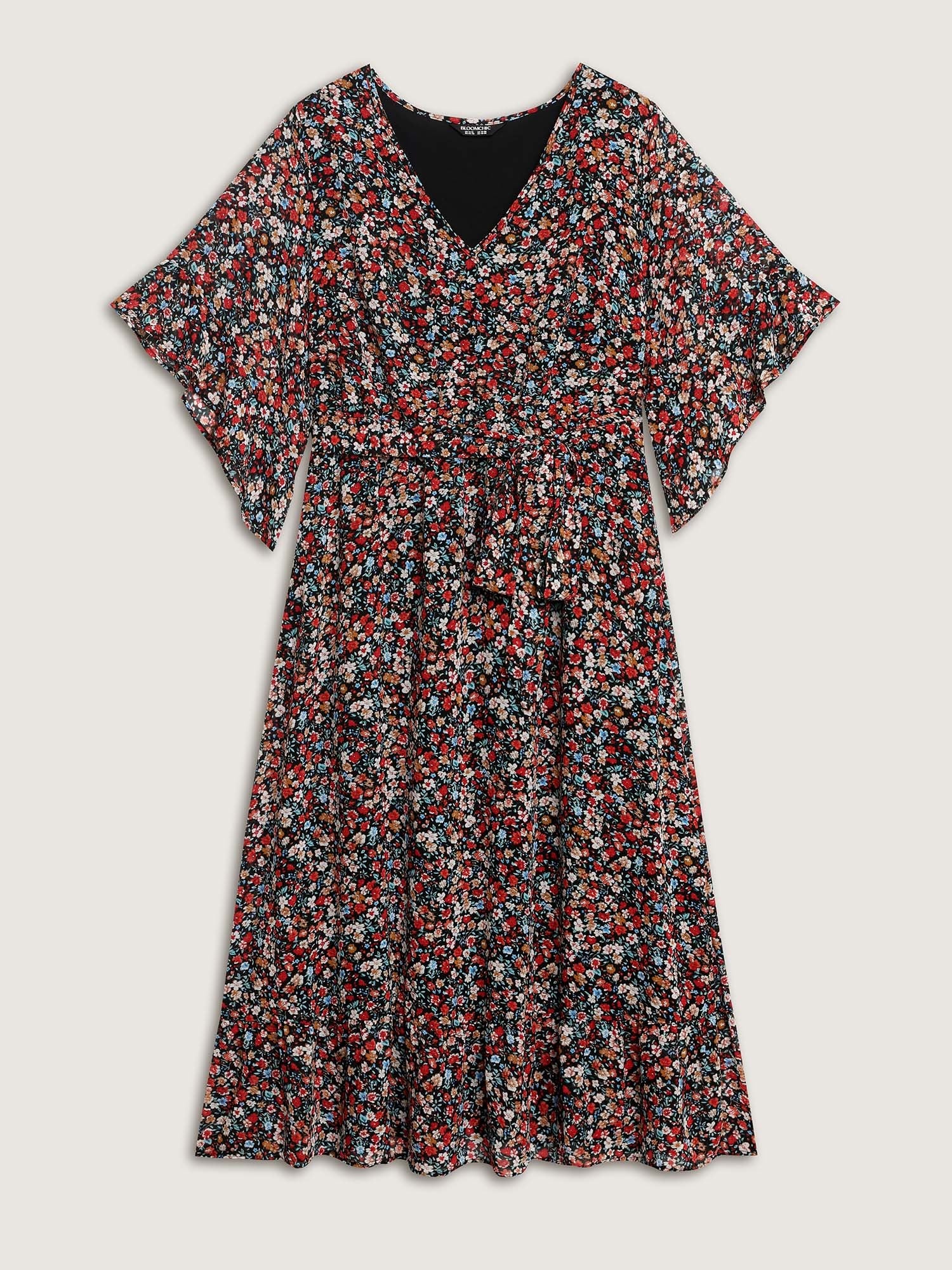 Floral Print Pockets Flared Sleeve Midi Dress