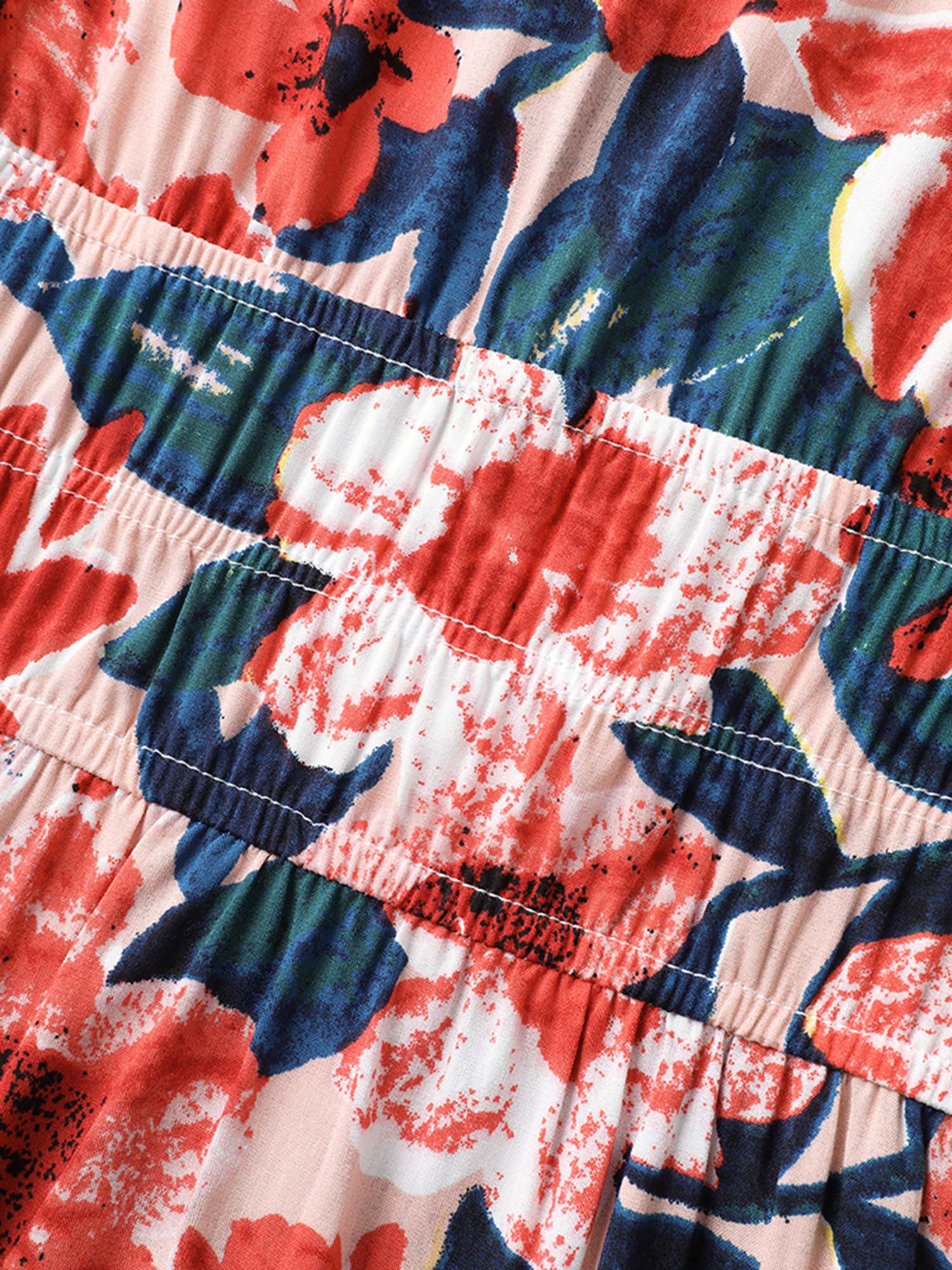 Floral Three-Layered Stretchy Waist Midi Dress