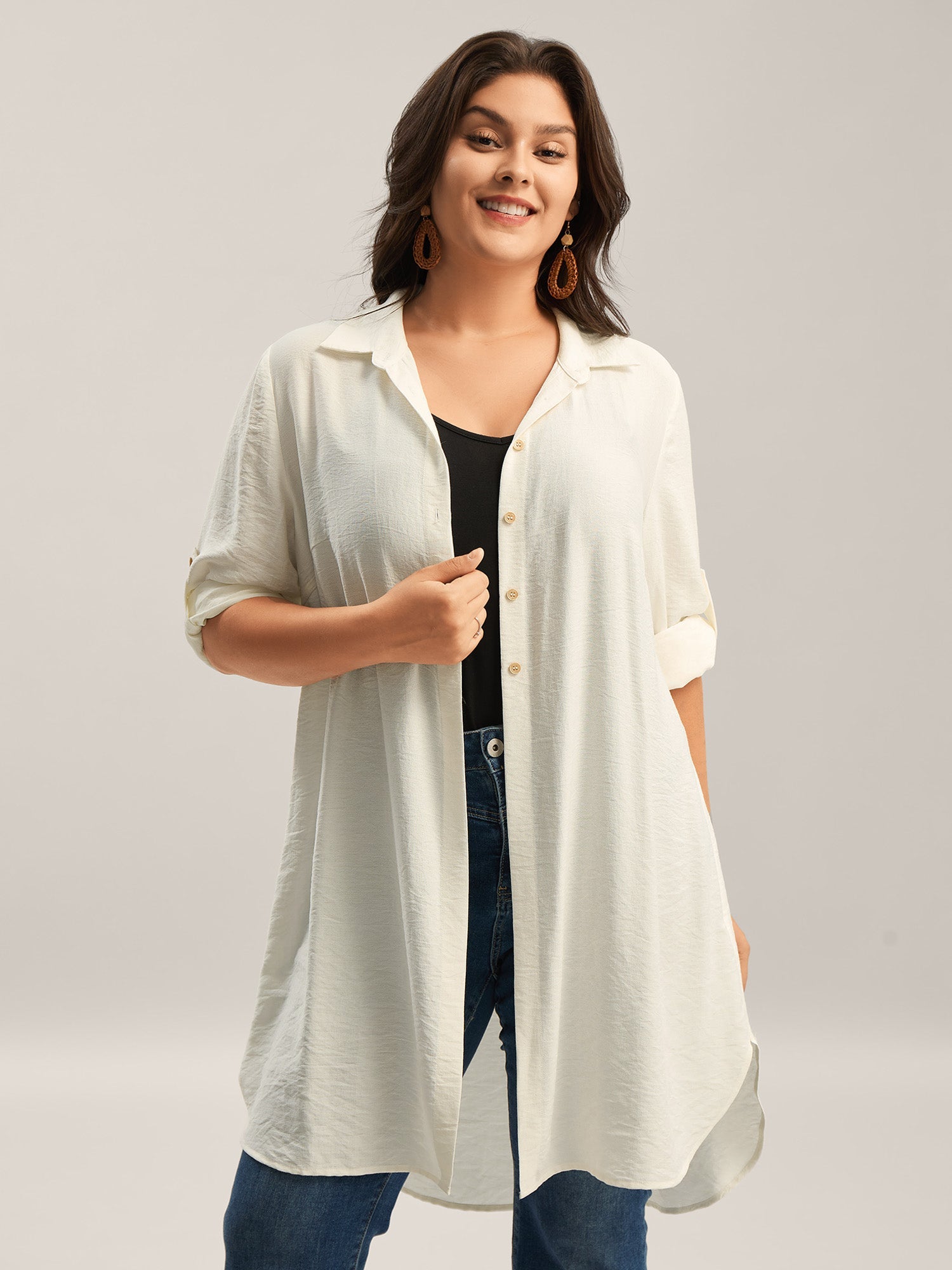 Front-Open Long Basic Blouse