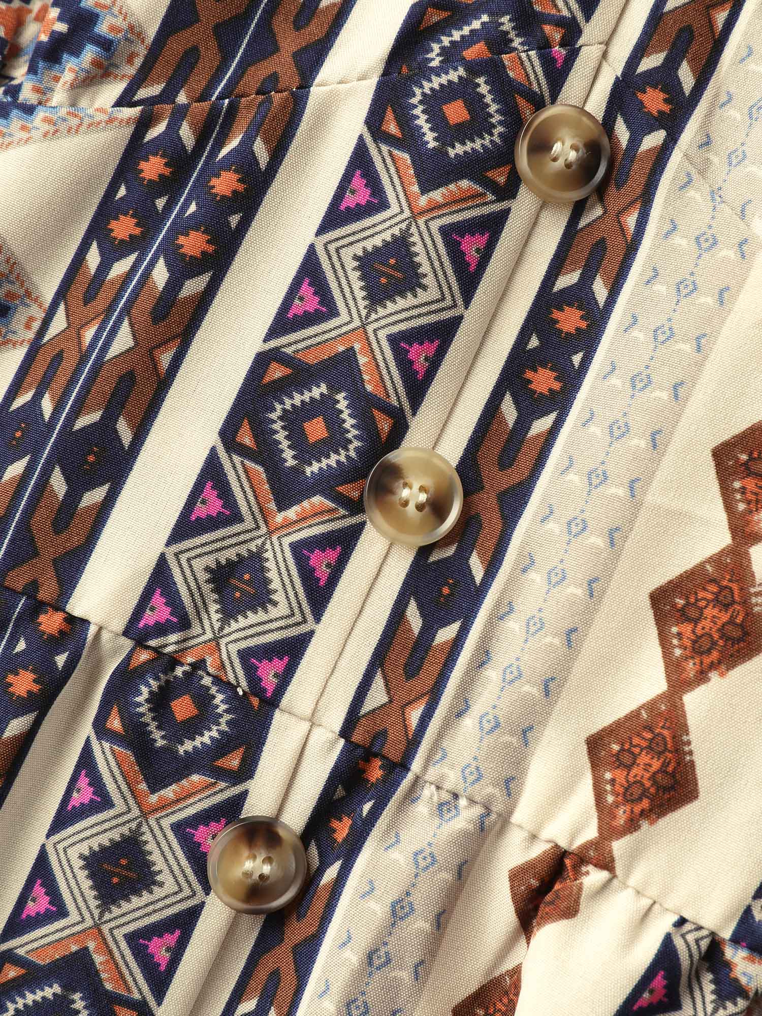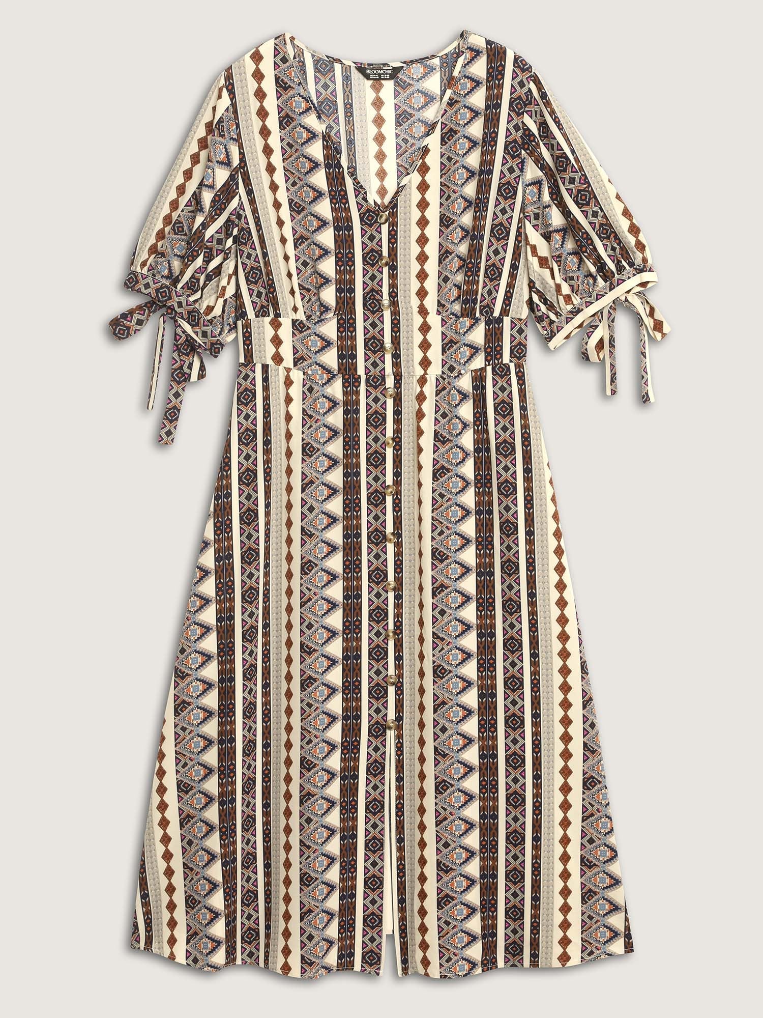 Geometric Stripes Button Detail Midi Dress