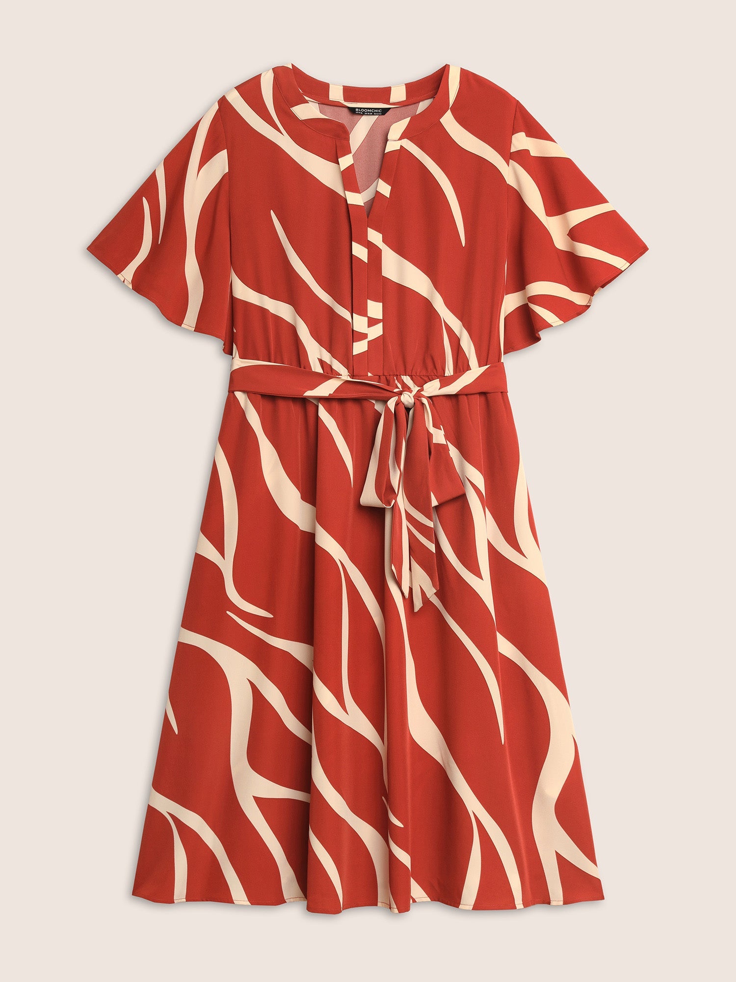Geometric Surplice Neck Tie Knot Midi Dress