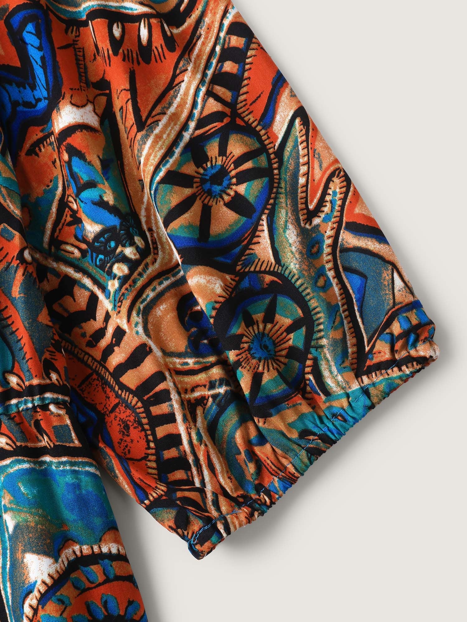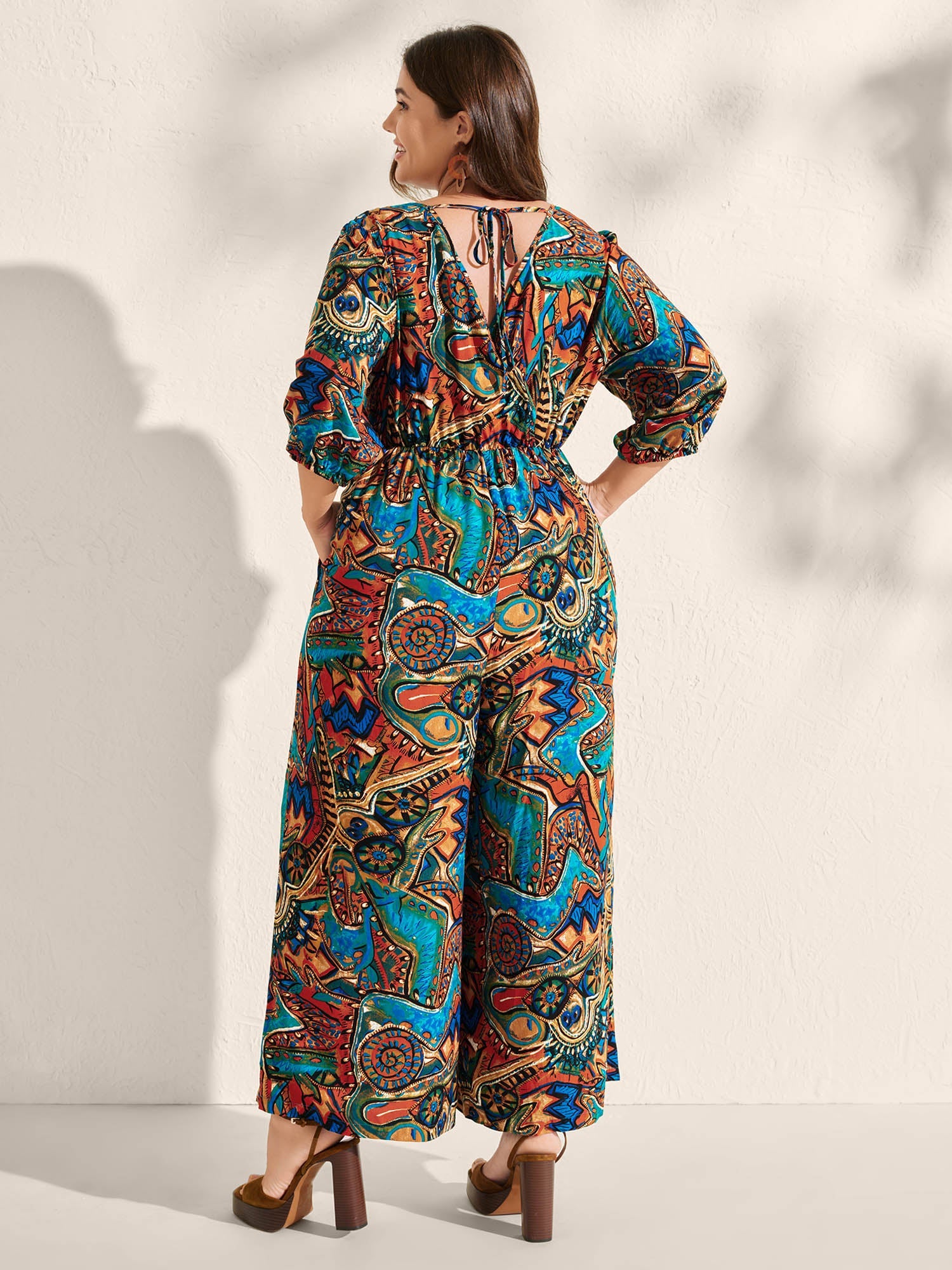 Graffiti Print Pockets Backless Tie Jumpsuit
