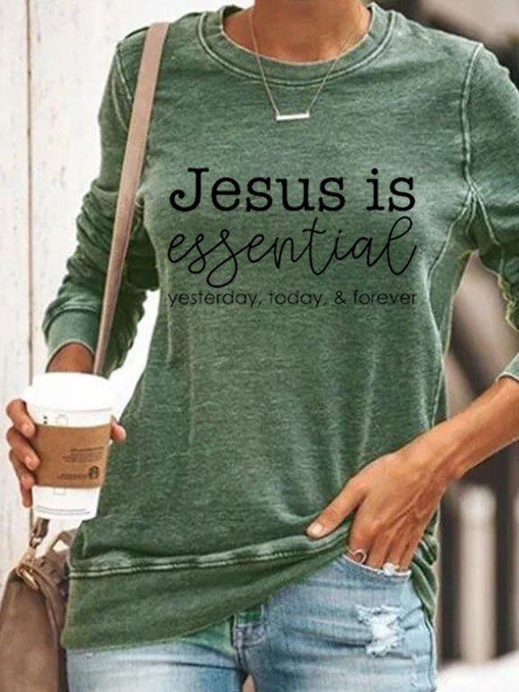 Jesus Is Essential Ysterday Today Forever Printed Casual Long Sleeve T-Shirt