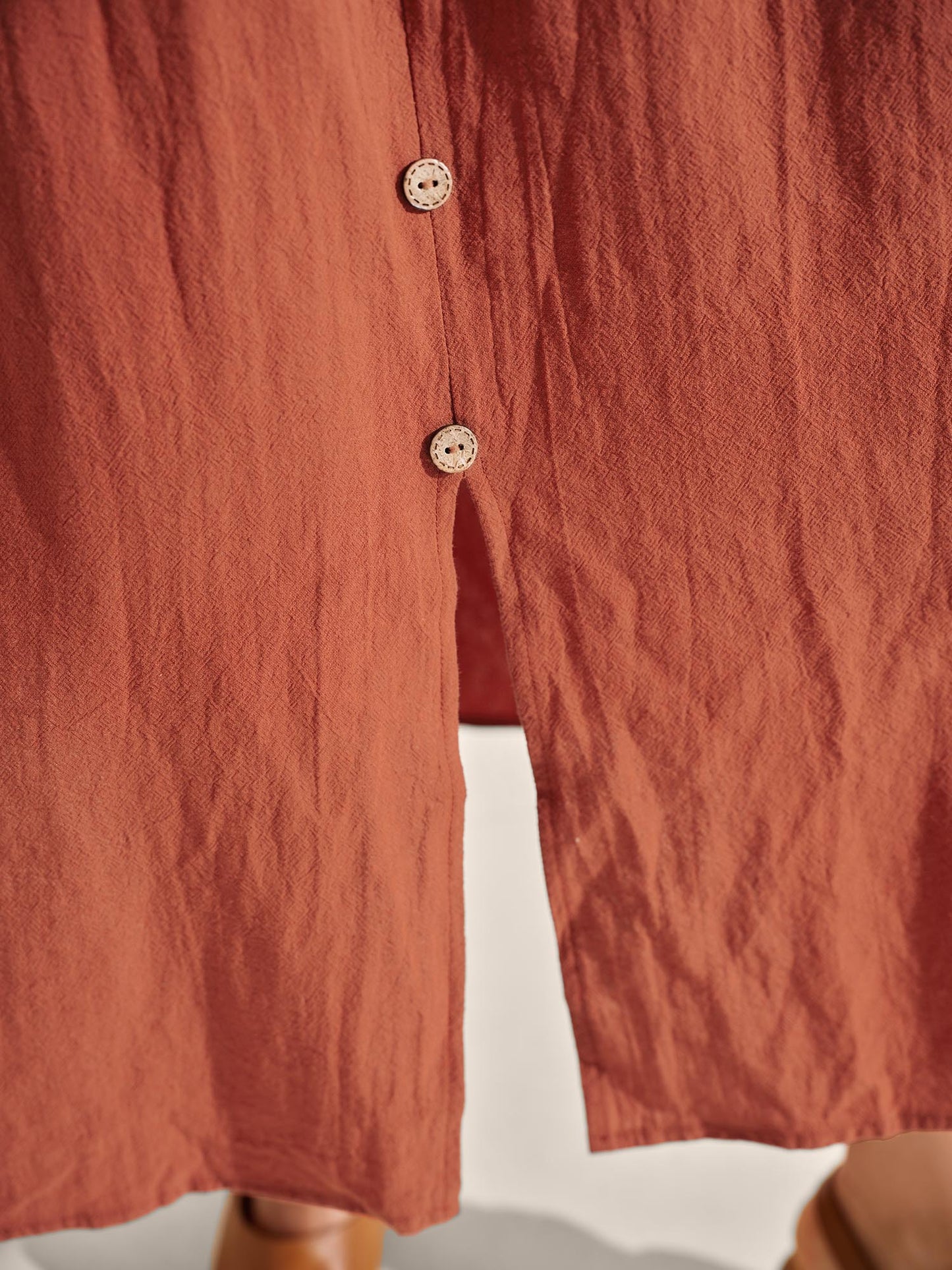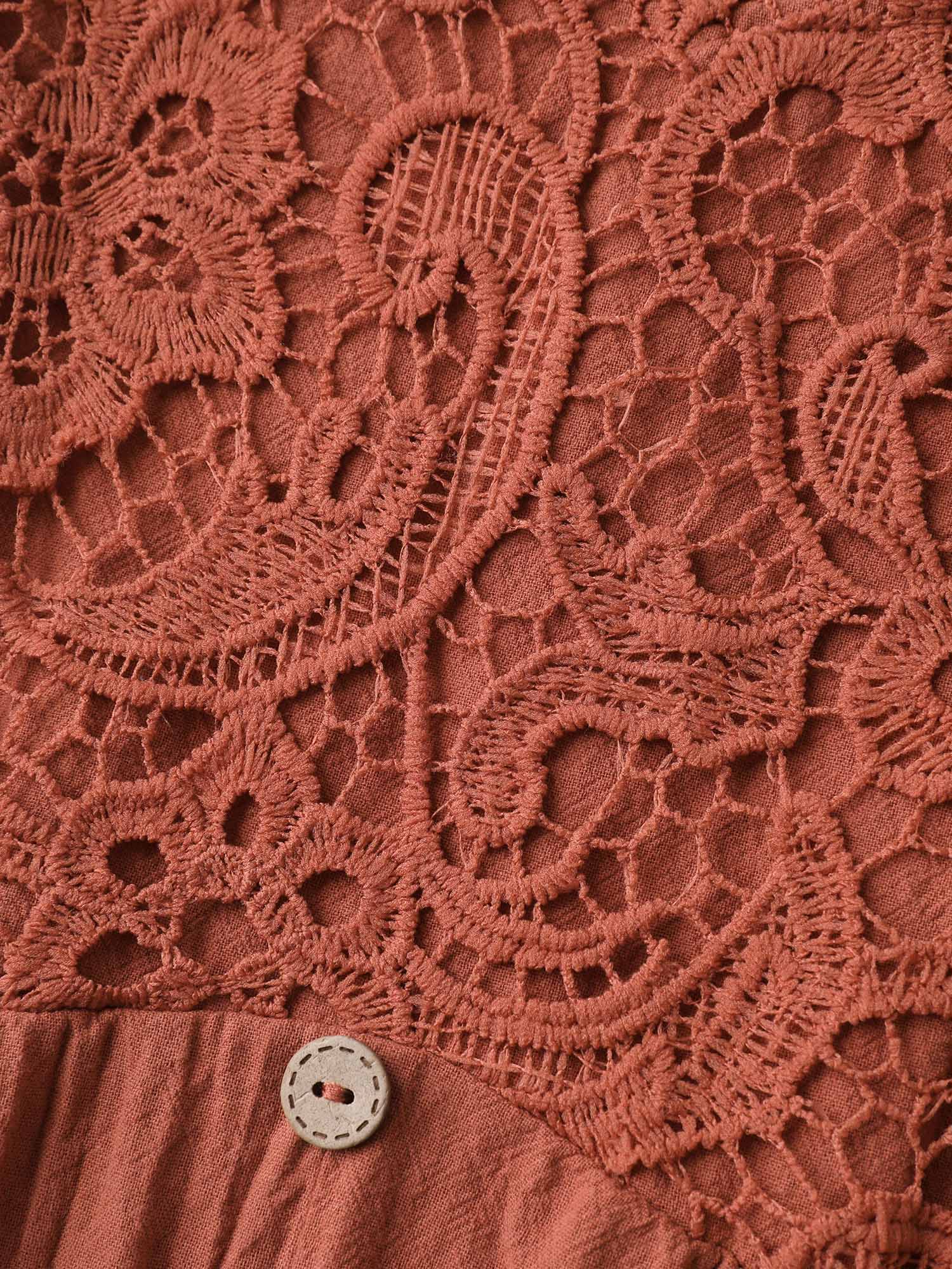 Lace Bodice Puffy Sleeve Button Midi Dress