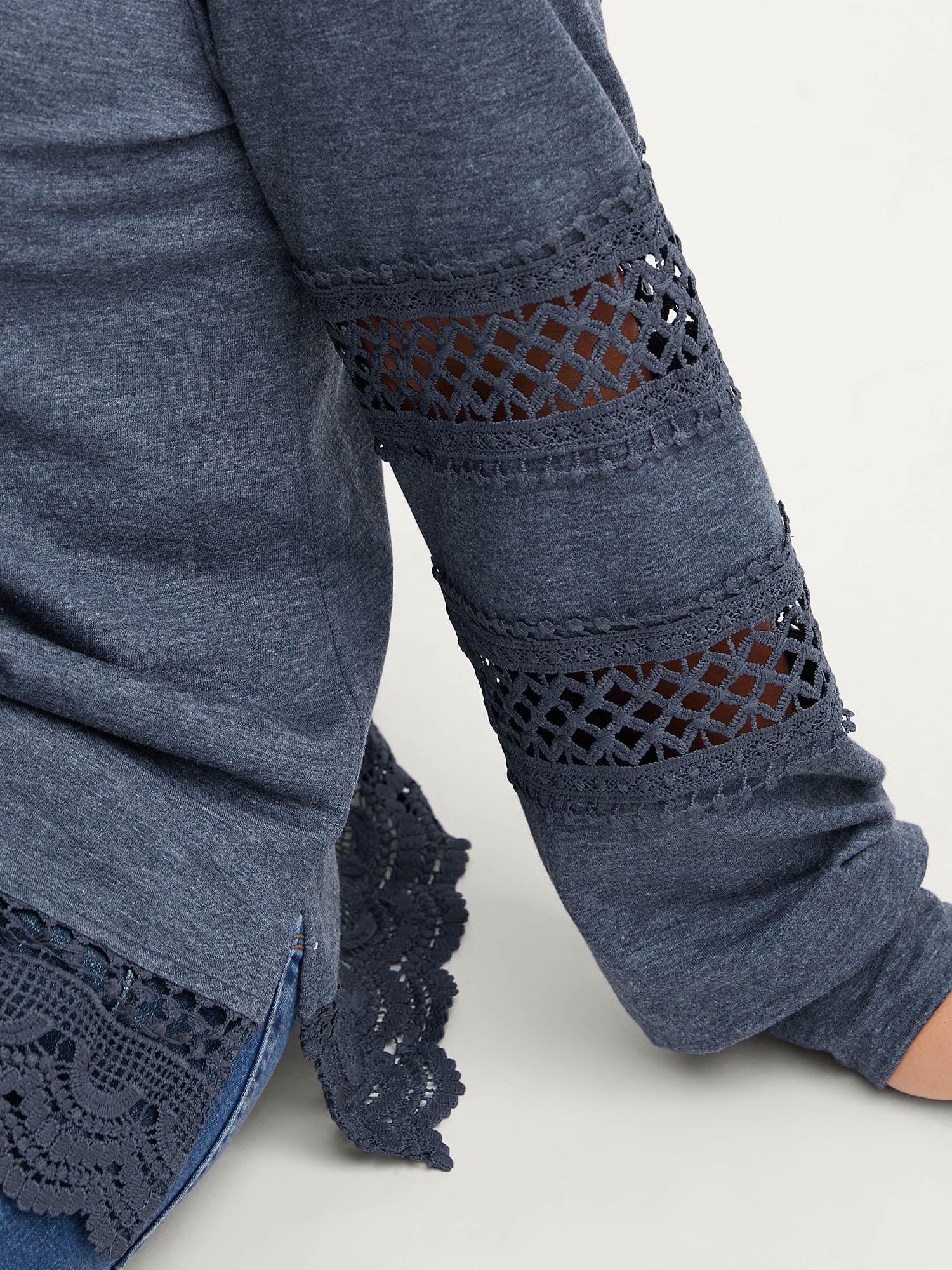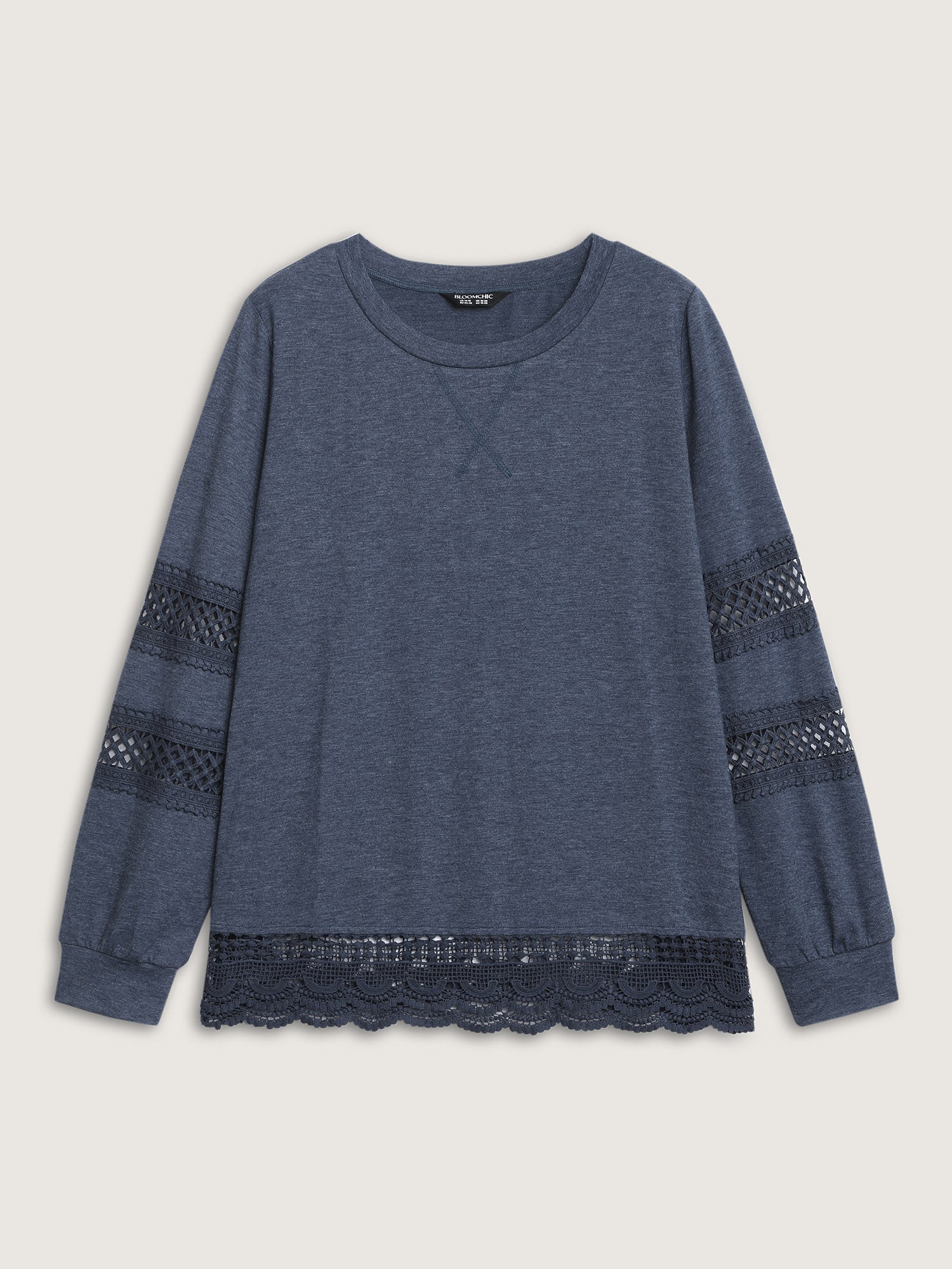 Lace Trim Cut-Out Patchwork Sweatshirt