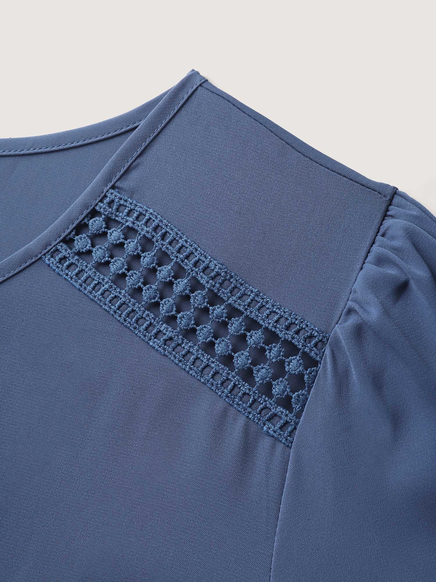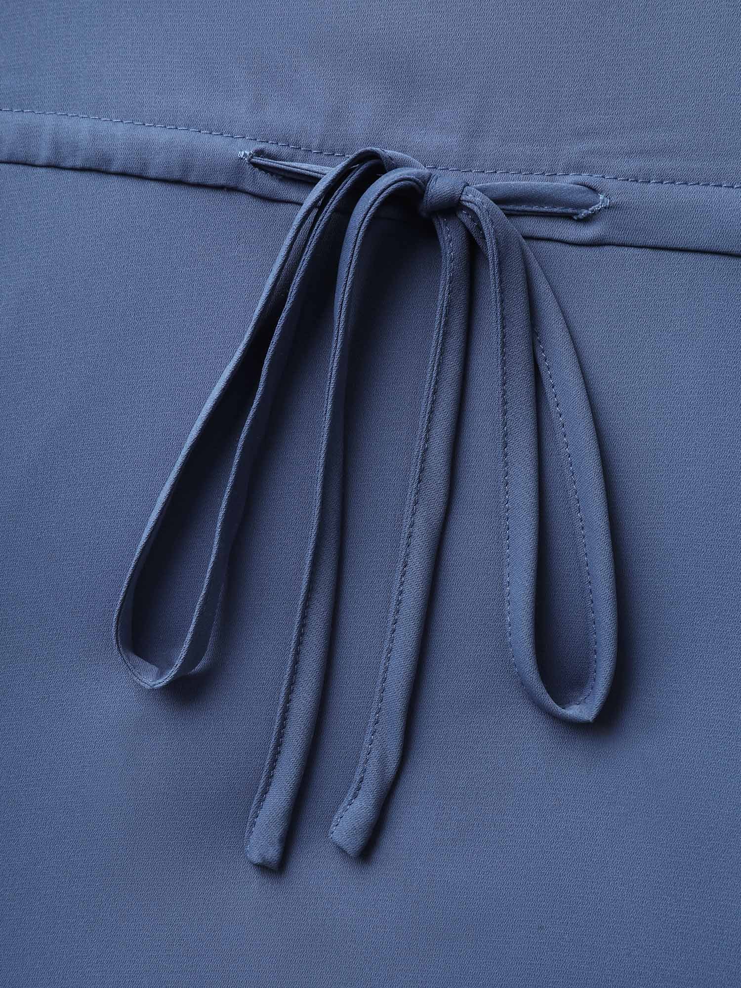 Lace Trim Waist-Drawstring Solid Midi Dress