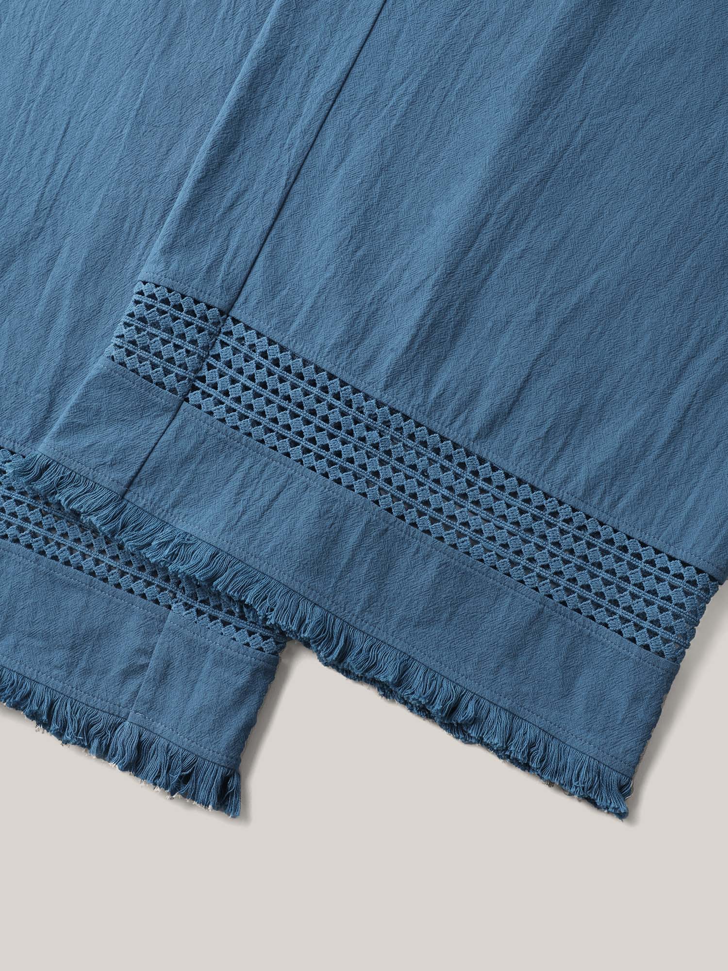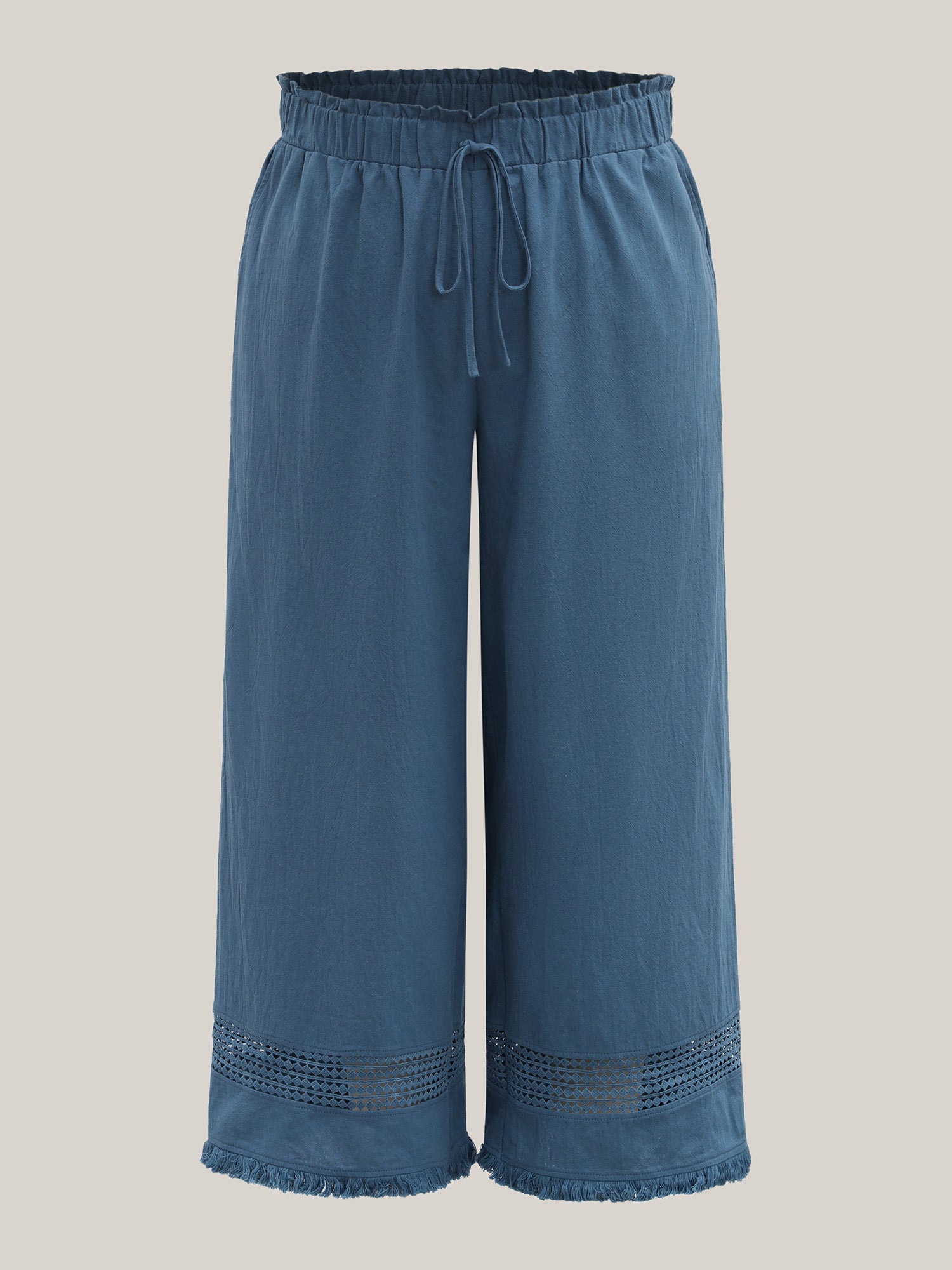 Cotton Waist-Tie Lace Wide-Leg Pants