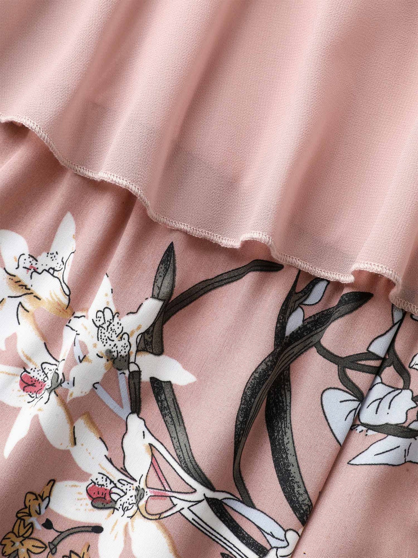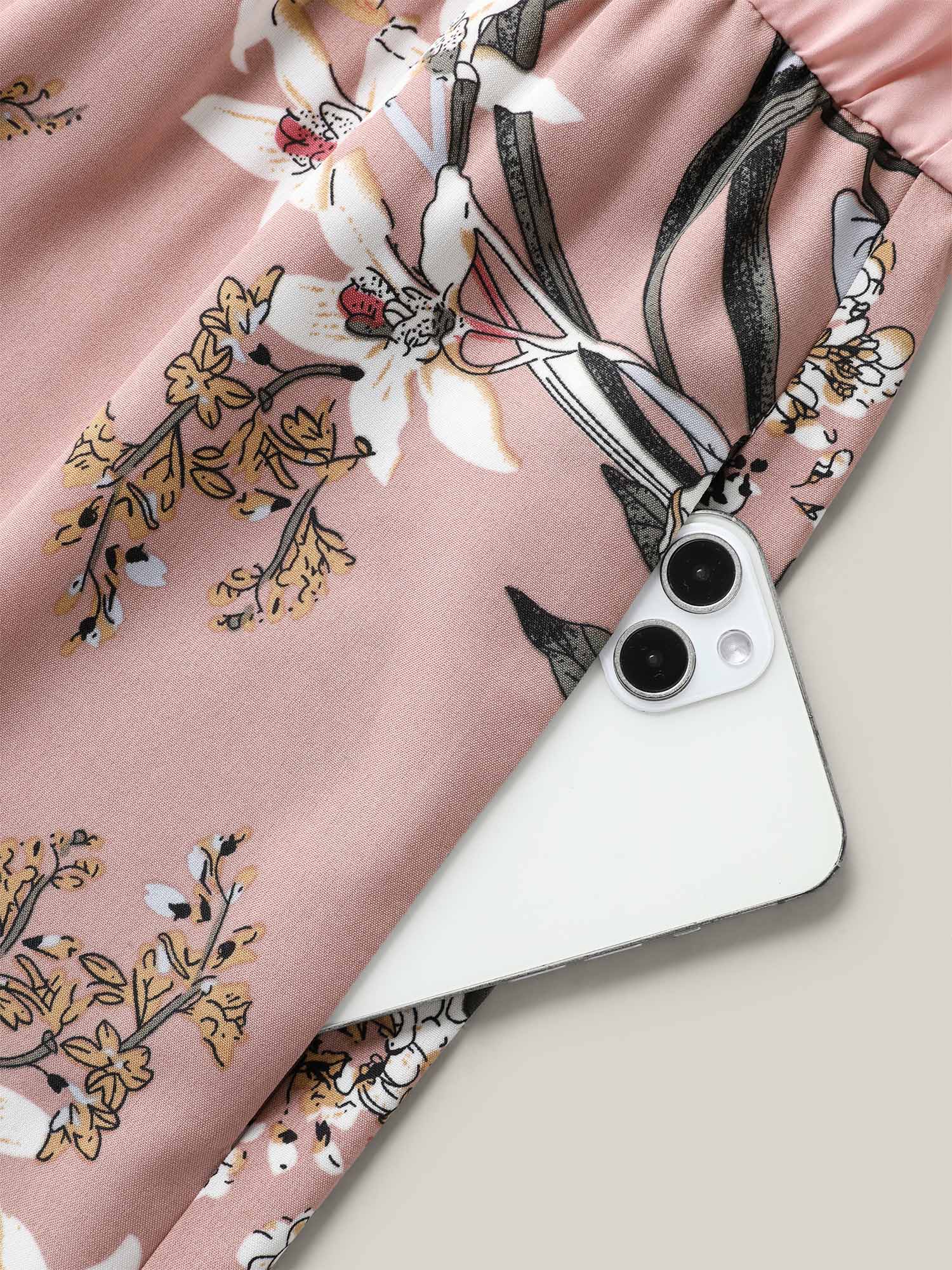 Large Flower Print Spliced Wide-Leg Jumpsuit