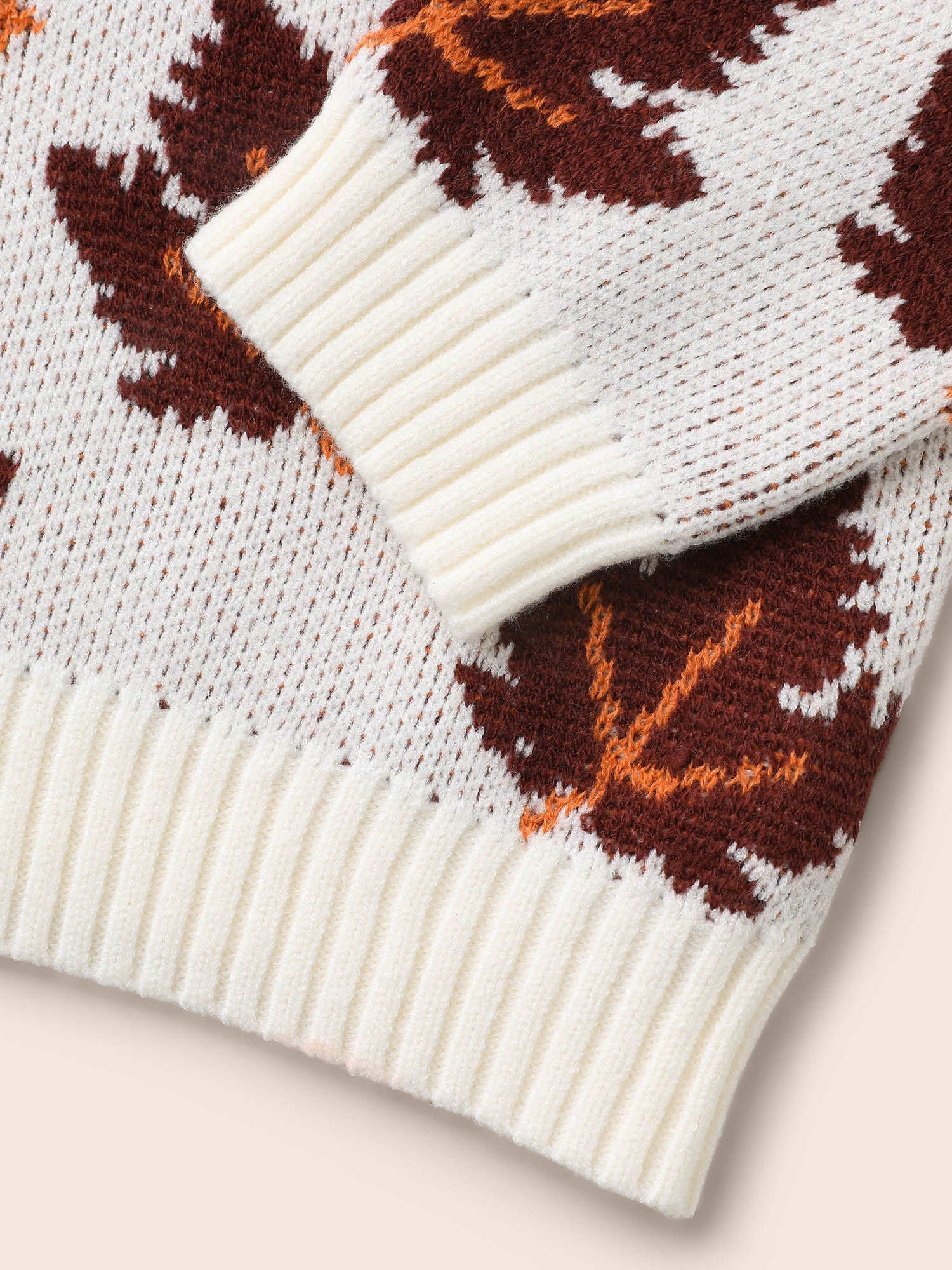 Leaves Jacquard Drop Shoulder Sleeve Pullover