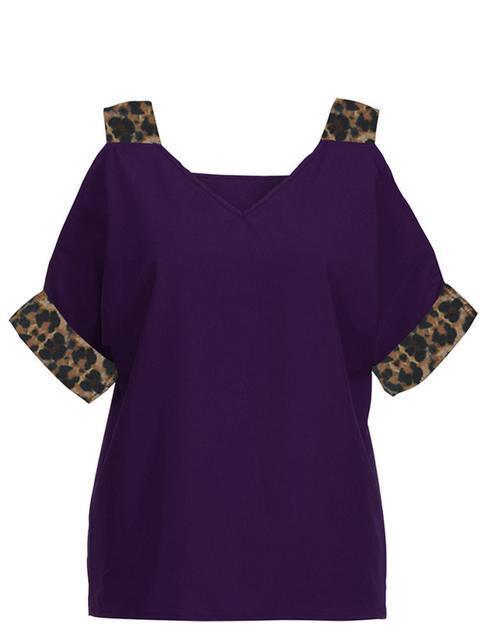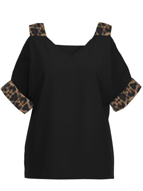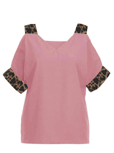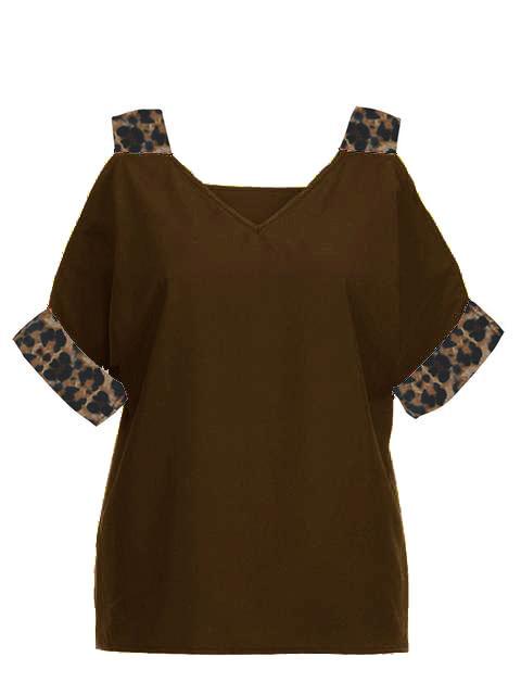 Leopard Print V-neck Cold Shoulder Tops
