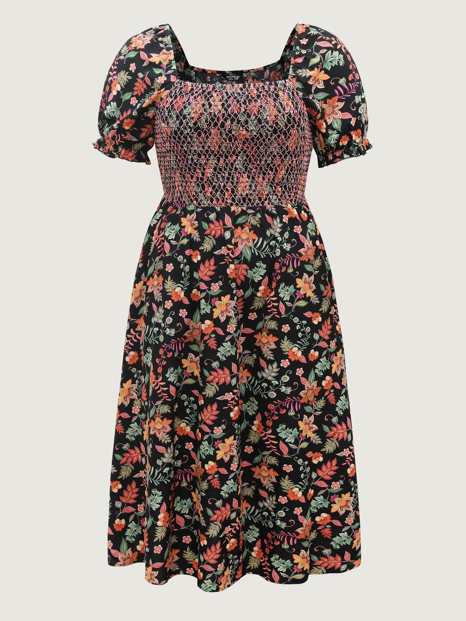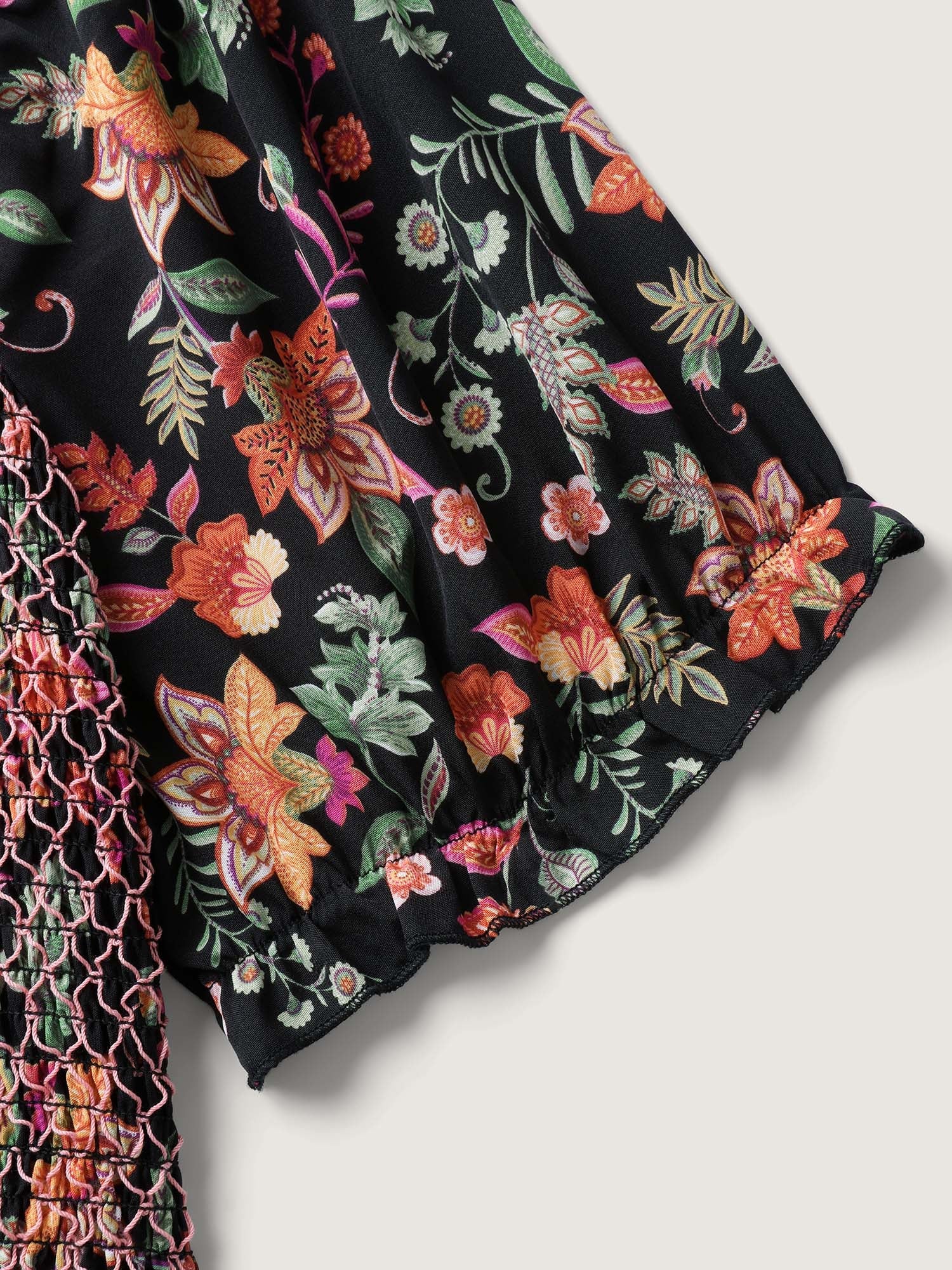 Net Shirred Paisley Print Midi Dress