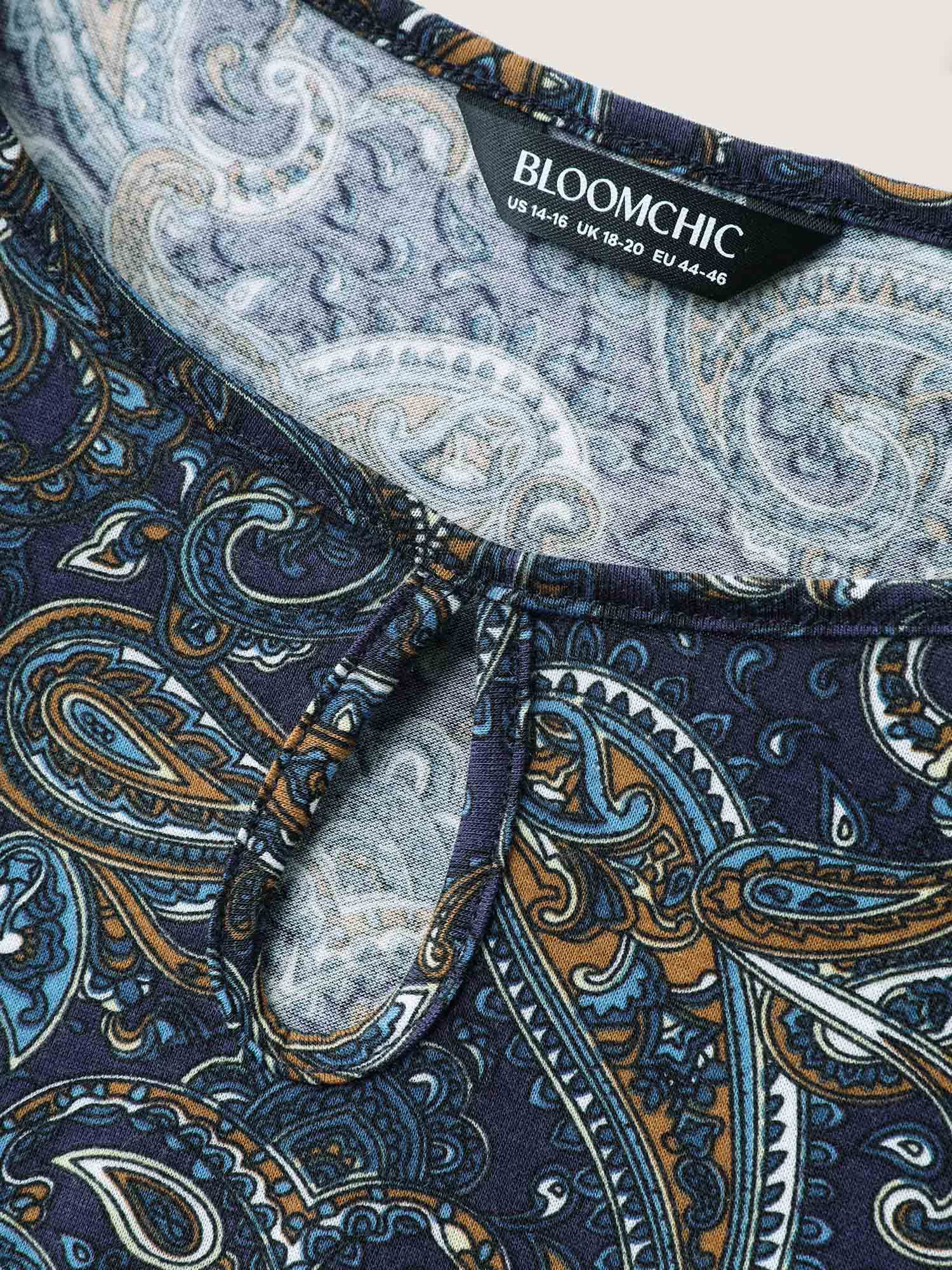 Paisley Print Neck Cut-Out Pleated Top