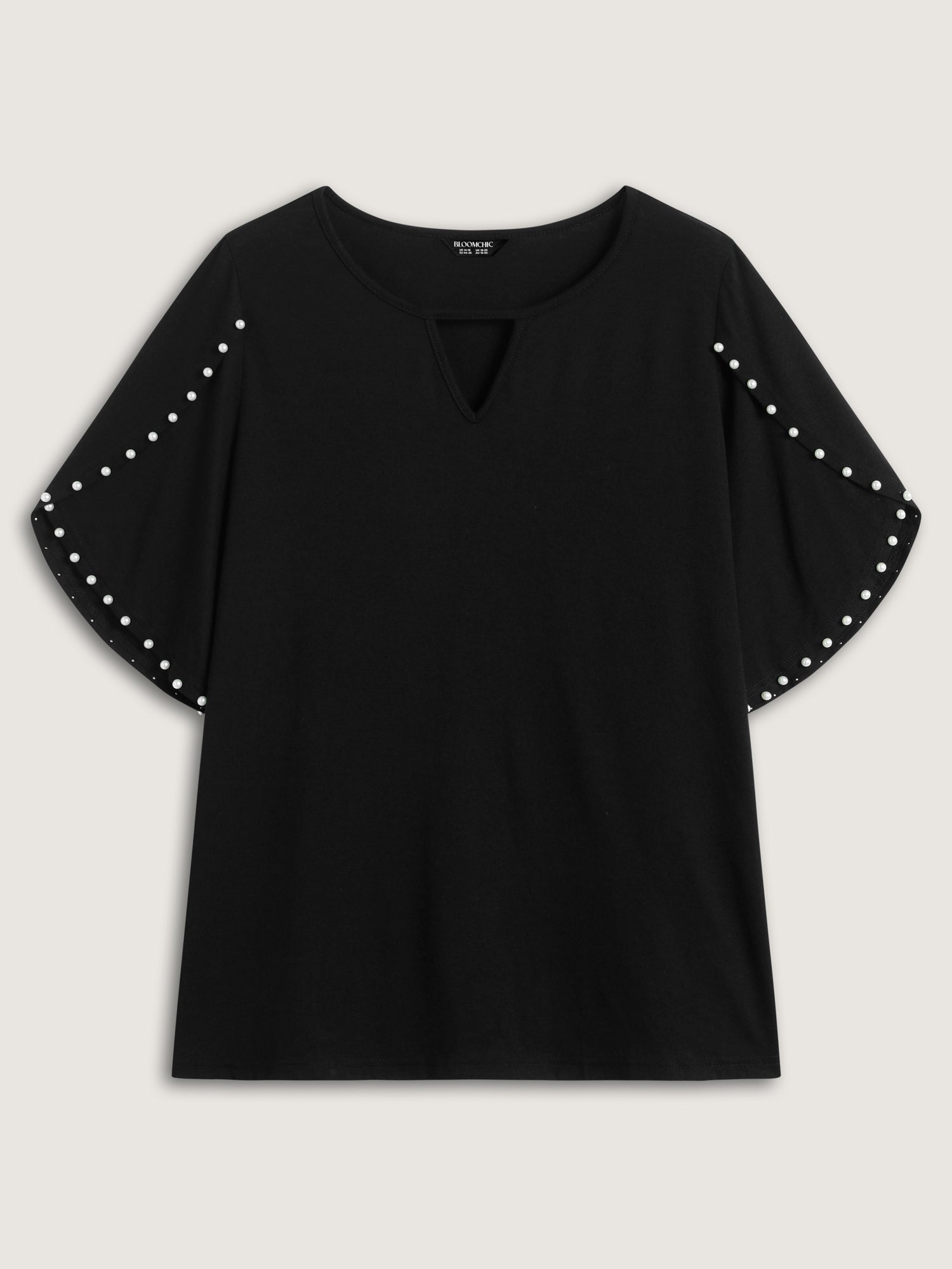 Pearl Petal Sleeve Neck Cut-Out Blouse