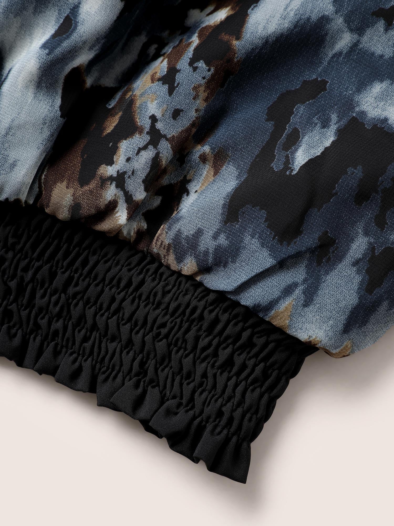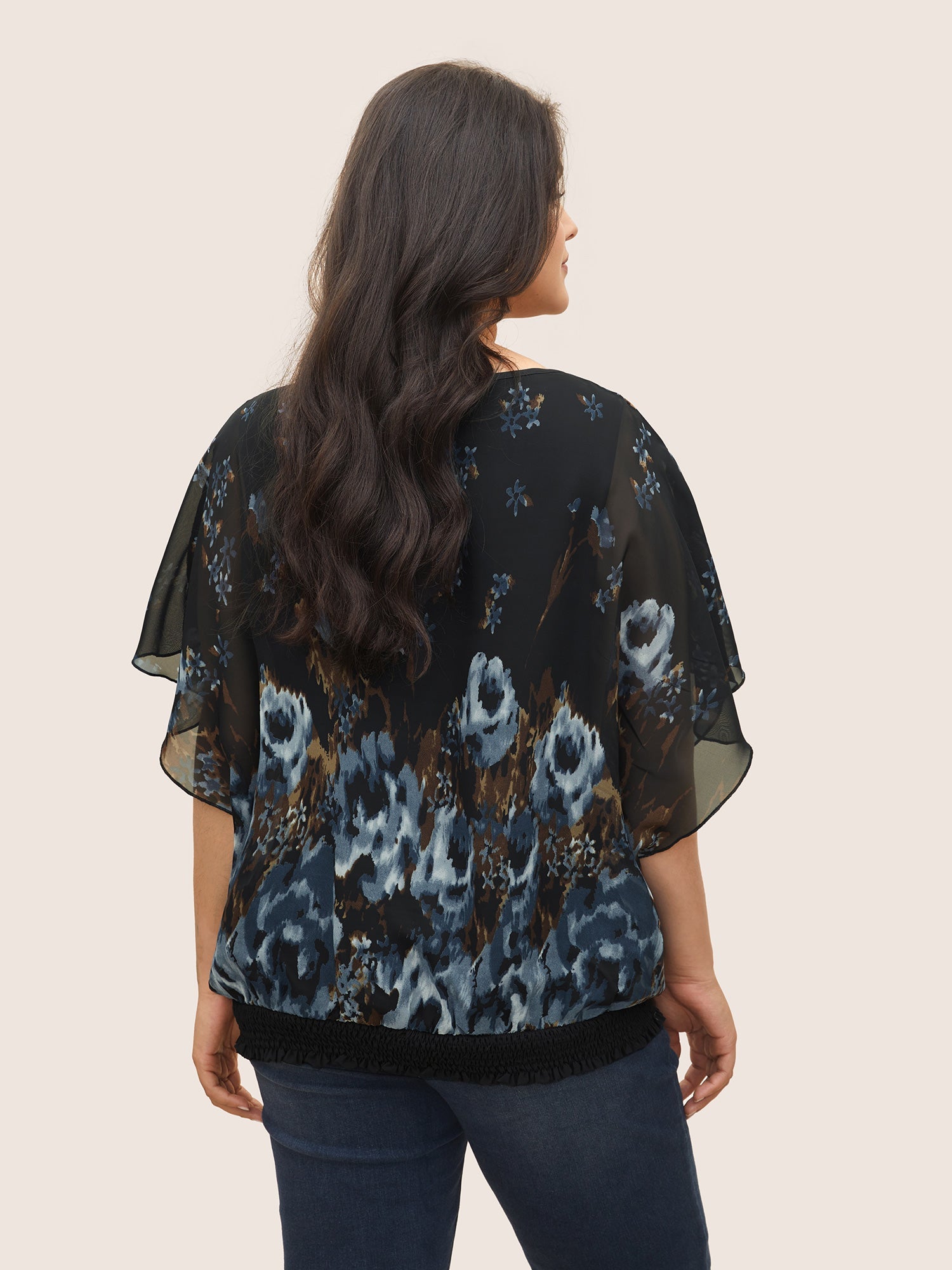 Pixel Flower Shirred Batwing Sleeve Blouse