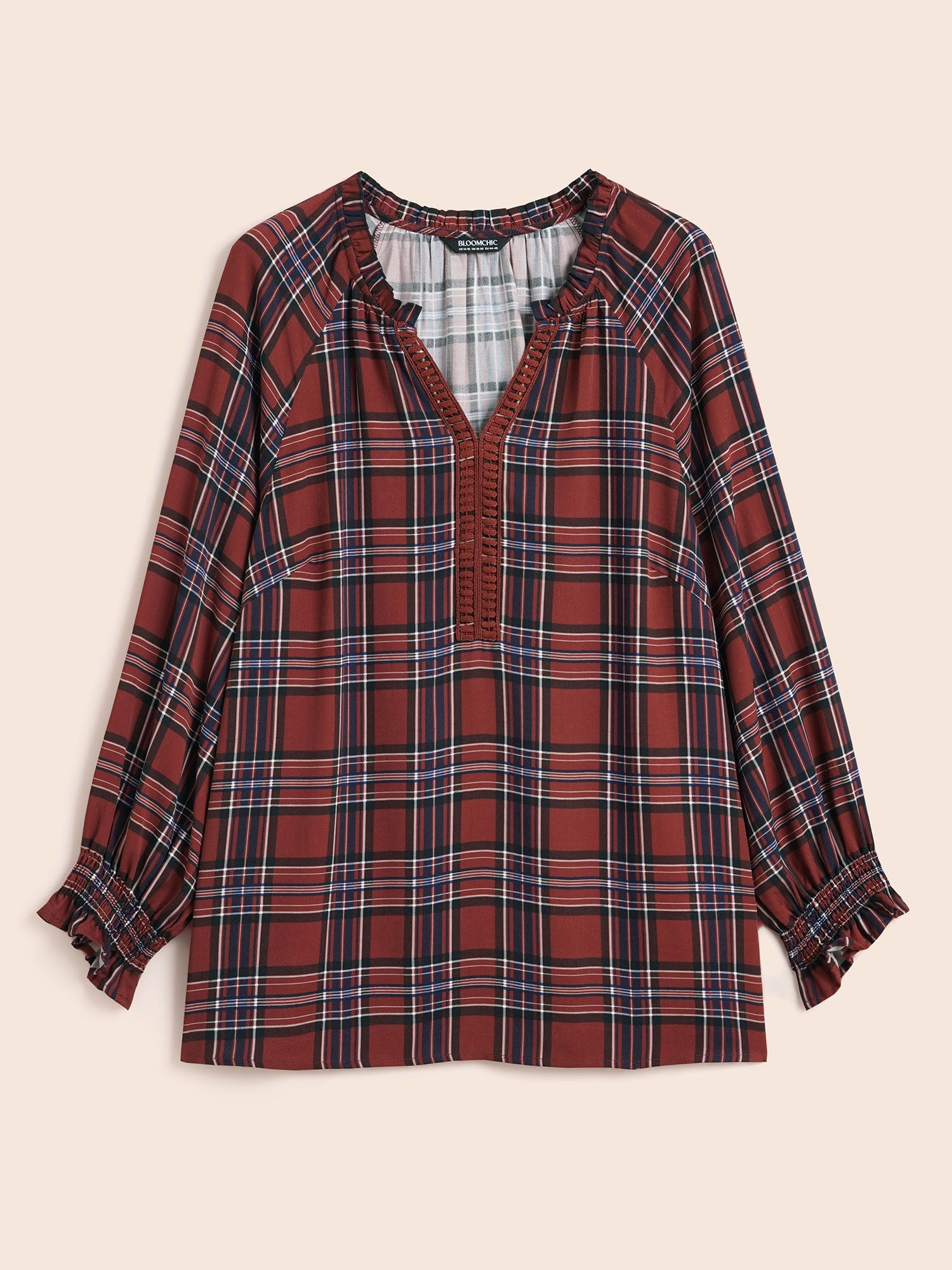Plaid Contrast Webbing Ruffle Trim Blouse