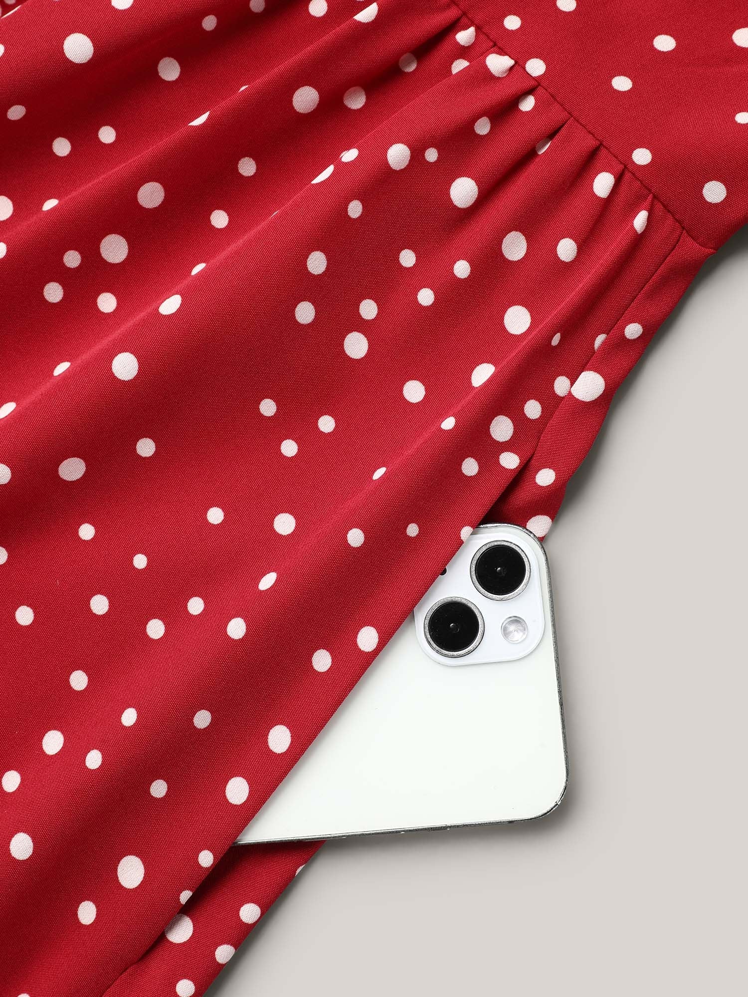 Polka Dots Print Cut-Out Flutter Sleeve Midi Dress