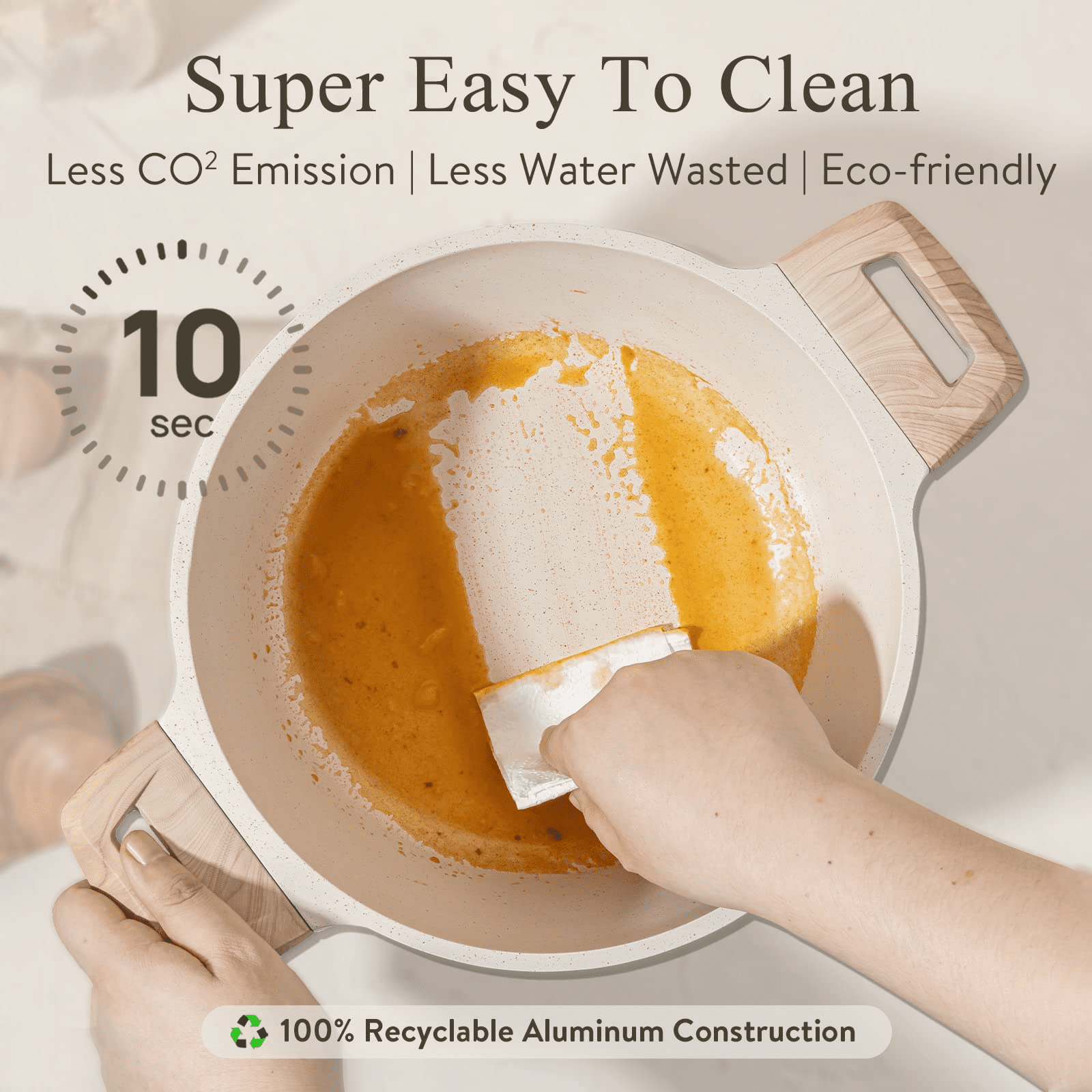 - Excellent Non Stick Performance Made from granite materials, our pots inside texture is smooth, releases food effortless and ensures excellent non stick performance. Cooking with low consistent heat is the key to success for long-lasting nonstick.
