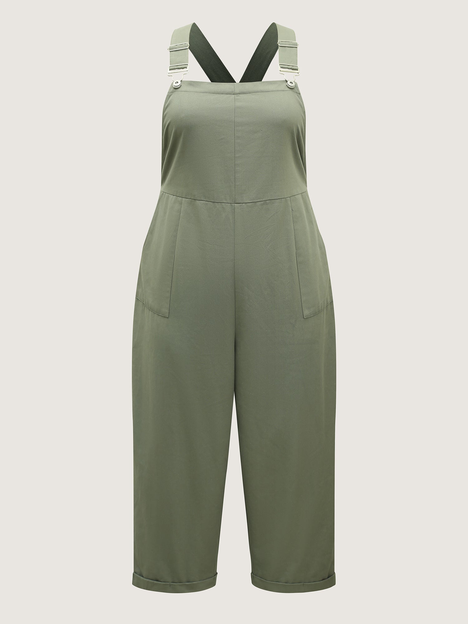 Pure Cotton Cuffed Hem Stretchy Waist Jumpsuit