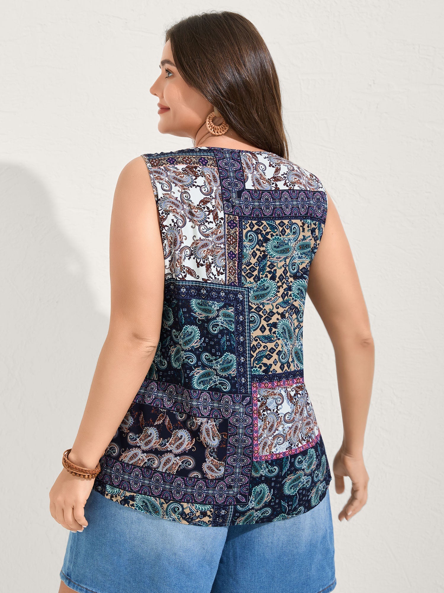 Rayon Floral Contrast Collage Tank Top
