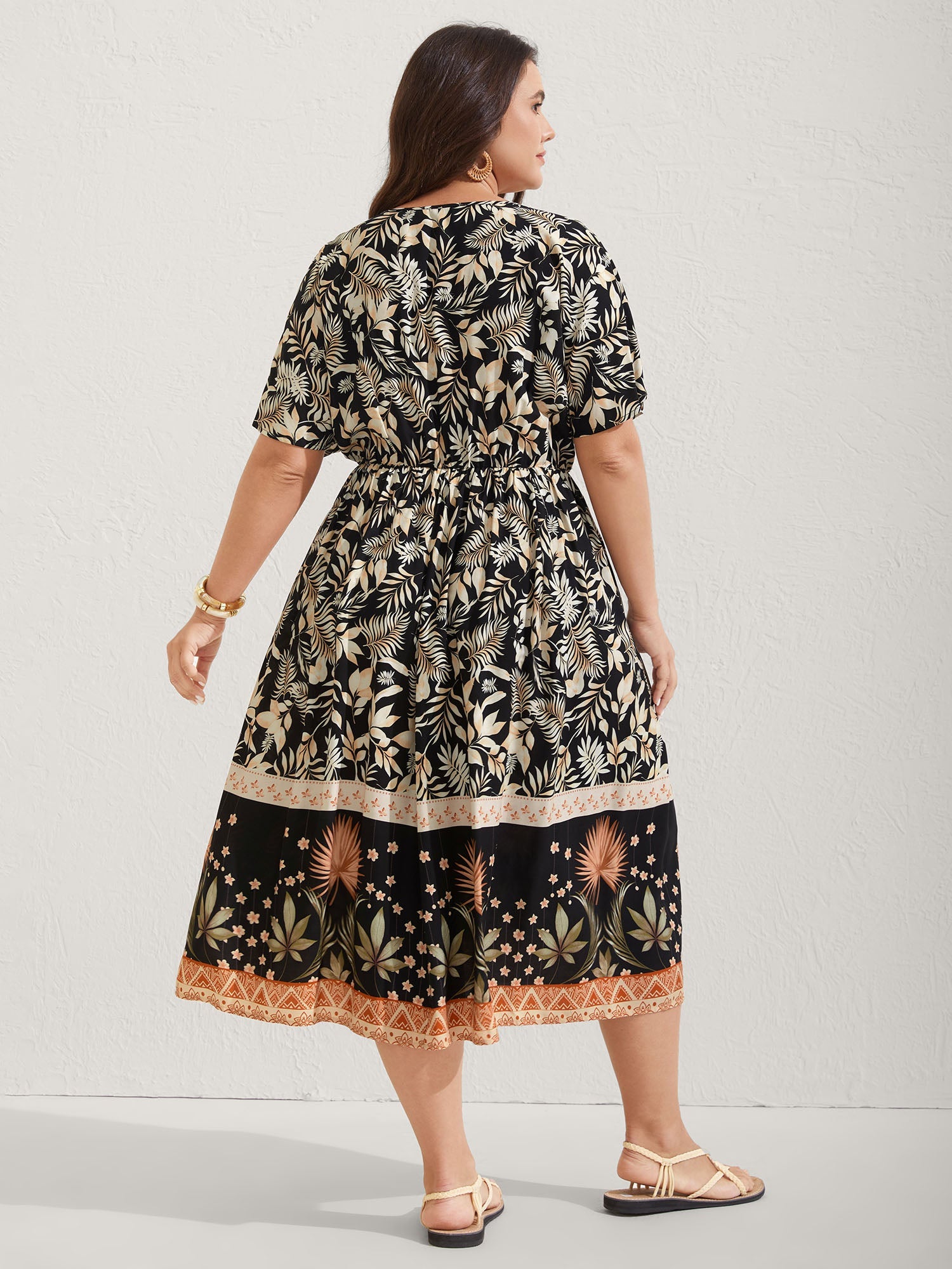 Rayon Floral Print Button Detail Midi Dress