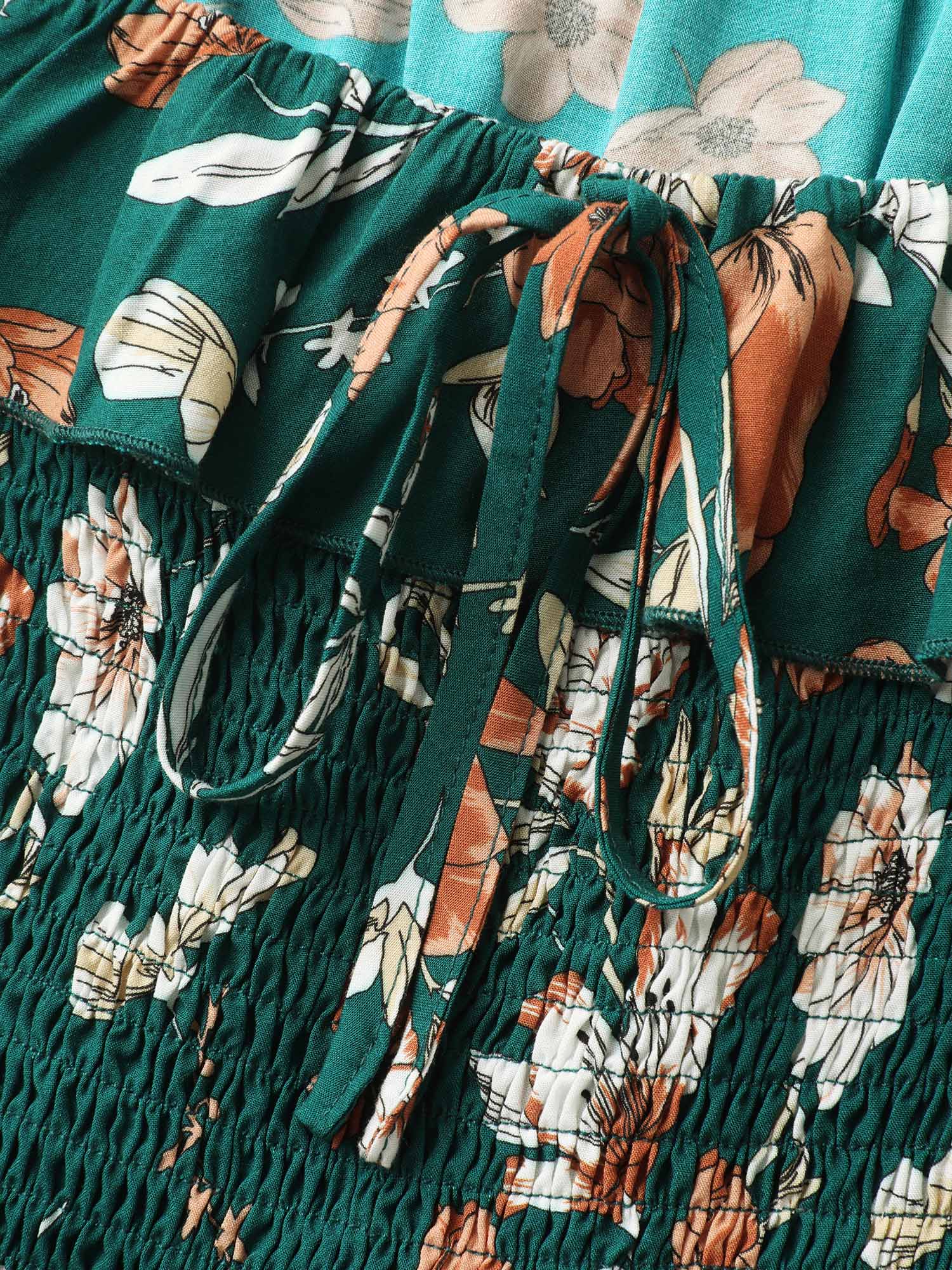 Rayon Floral Shirred Stretchy Waist Midi Dress