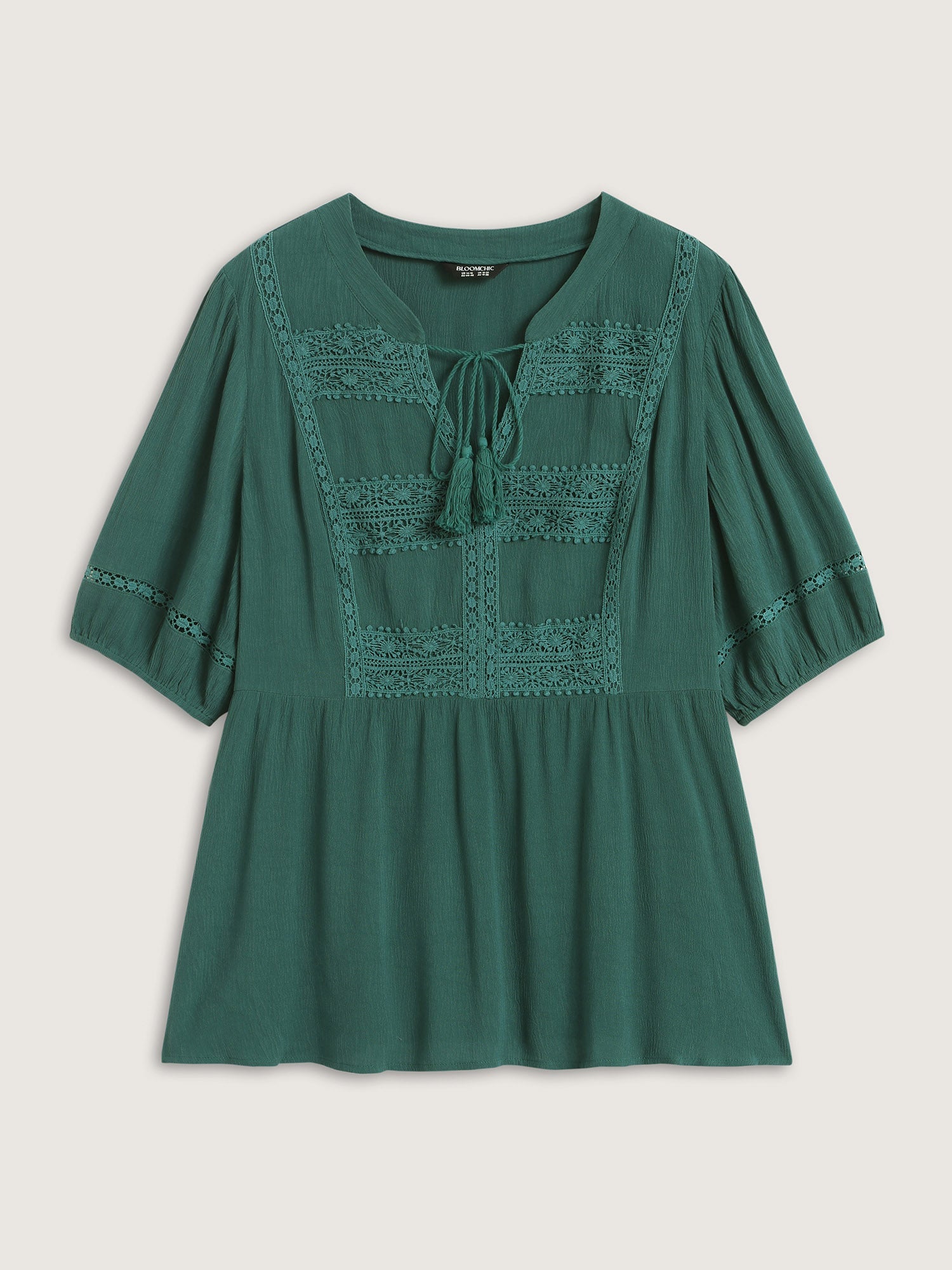 Rayon Lace Tassel Neck-Tie Blouse