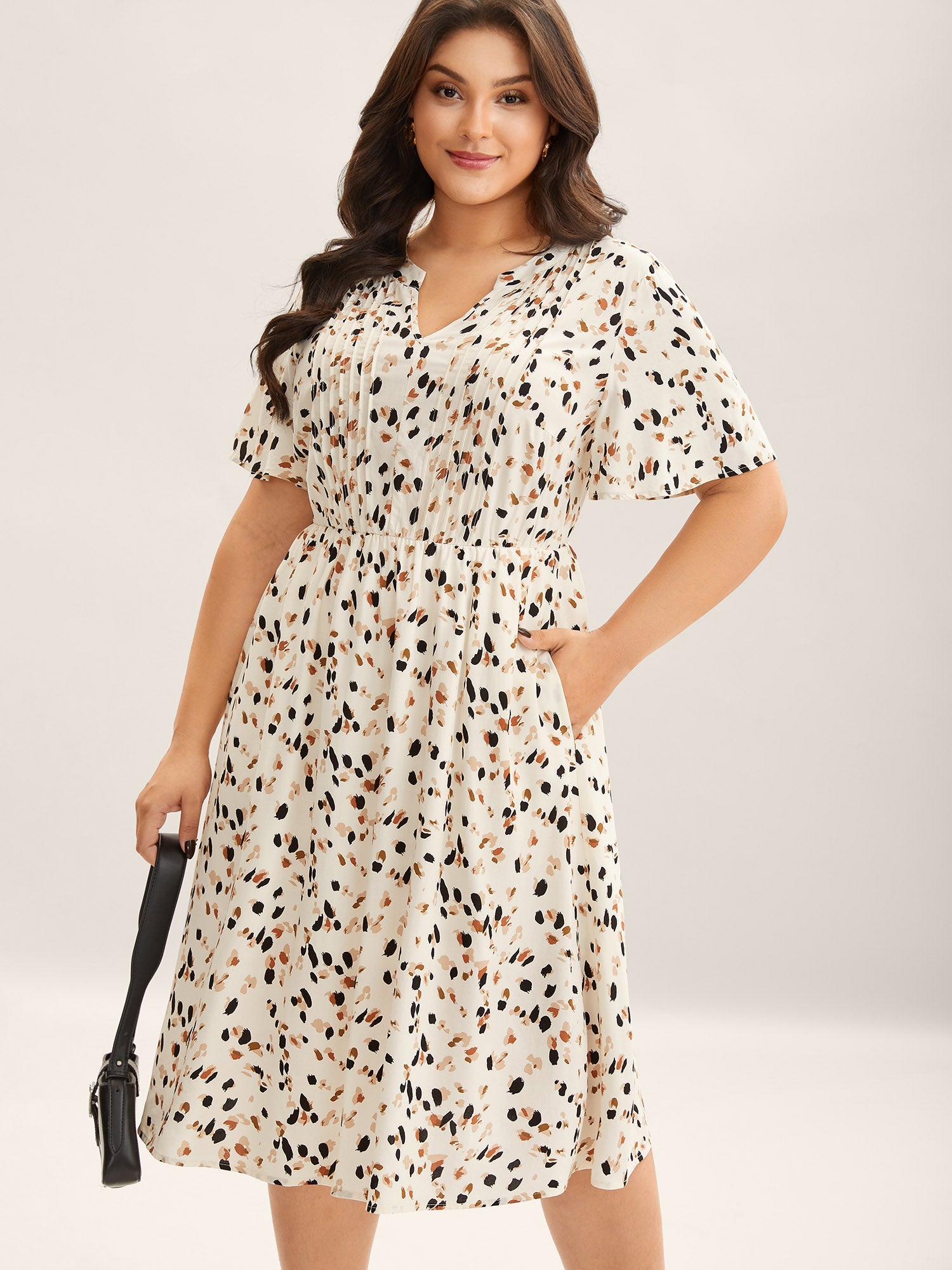 Rayon Toothpick Pleat Leopard Print Midi Dress